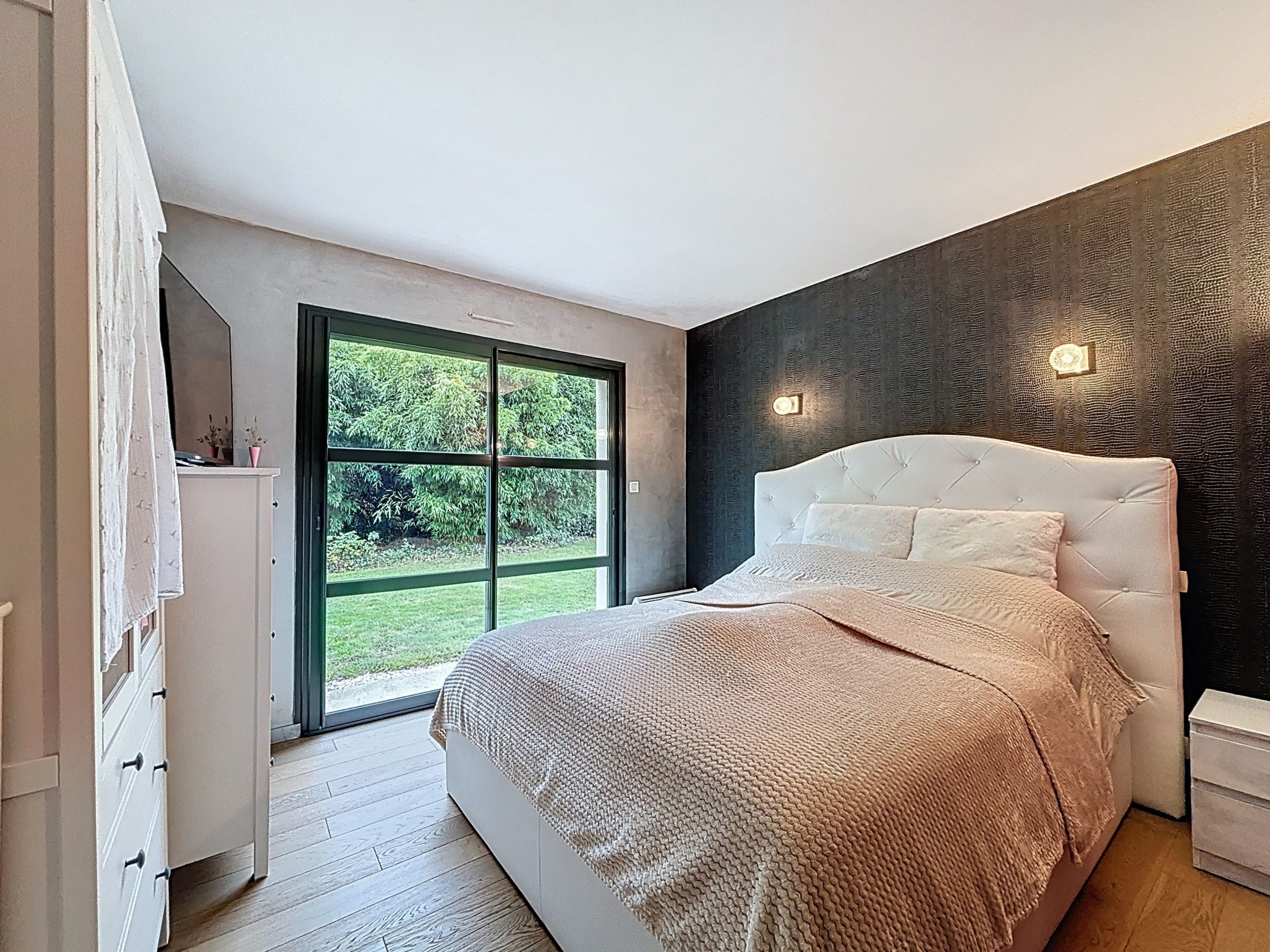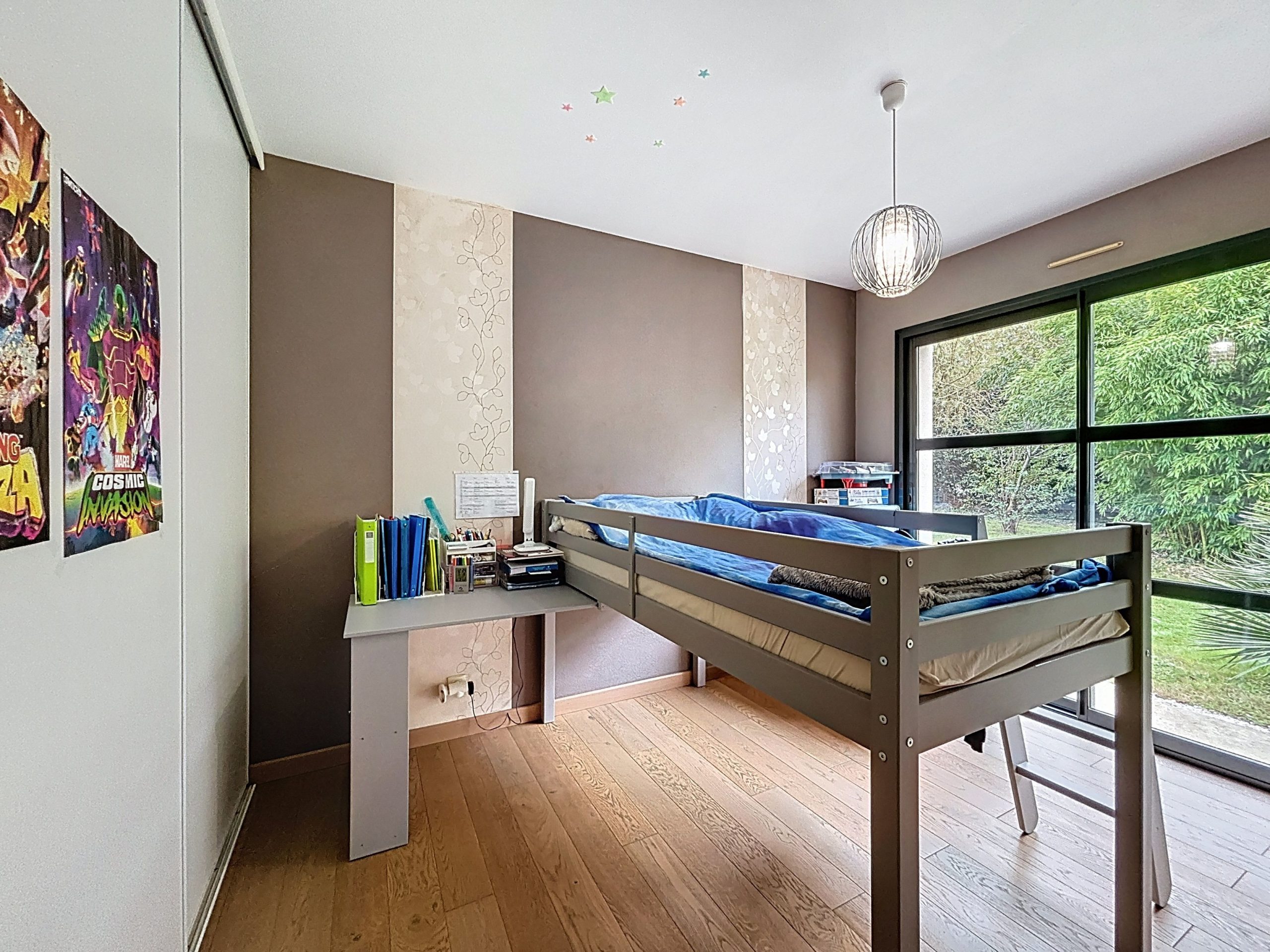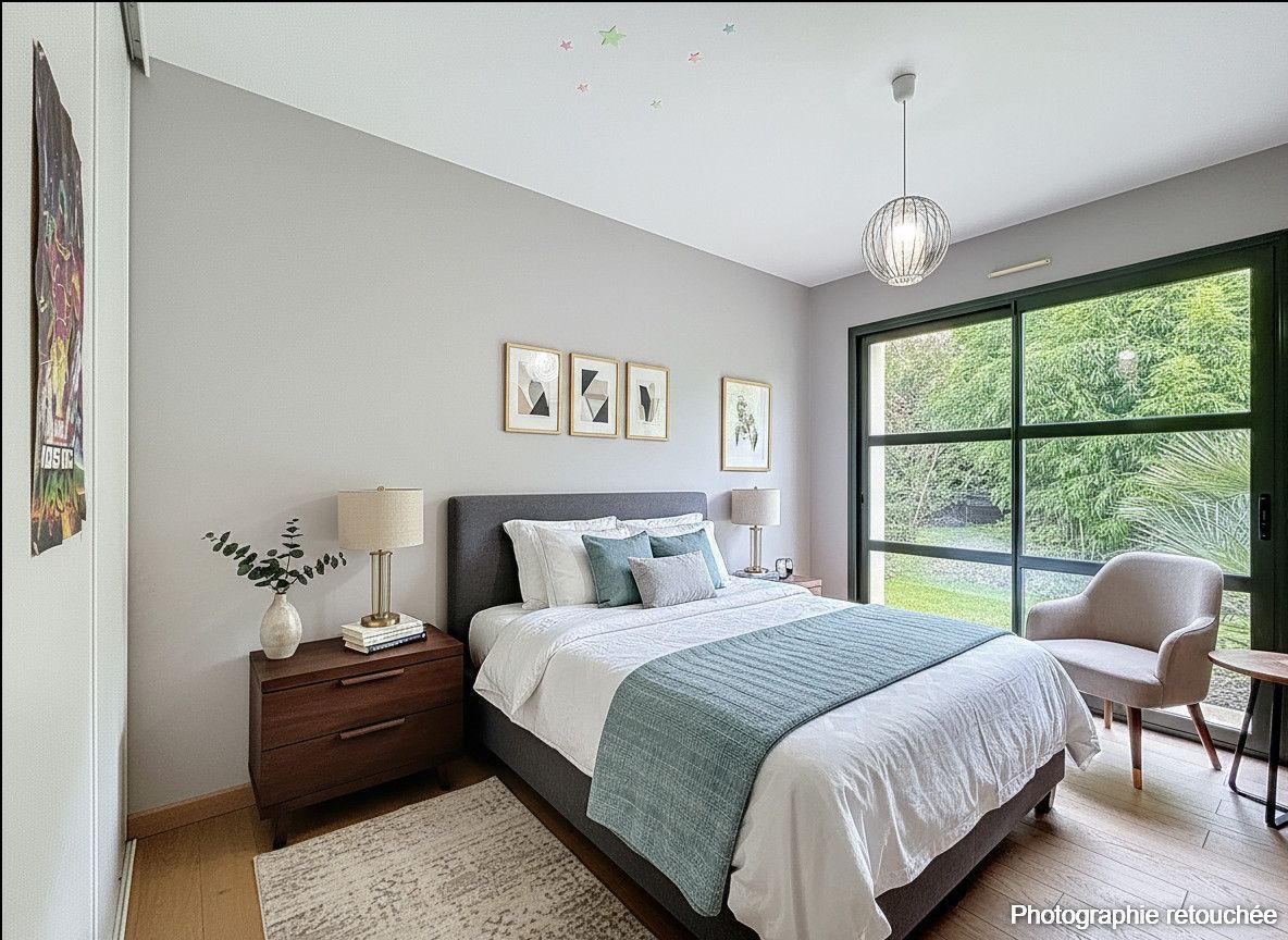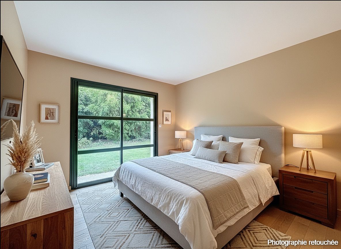Côté nuit, la maison dispose de 3 chambres, chacune avec un accès direct à l’extérieur – un vrai privilège au quotidien – ainsi qu’un bureau, idéal pour télétravailler ou créer un espace supplémentaire. La maison offre également une salle de bain et une salle d’eau, pour un confort optimal en famille.
