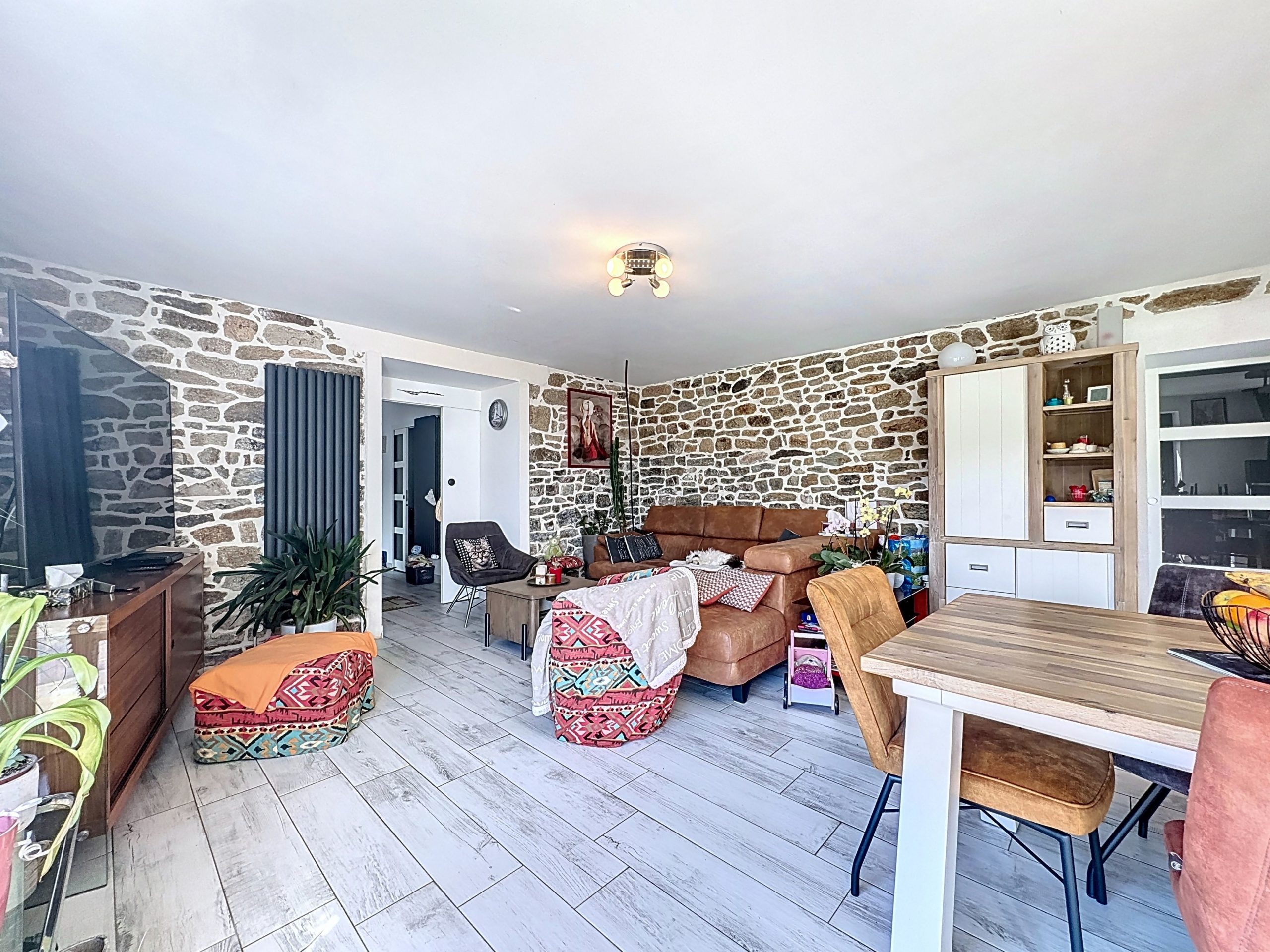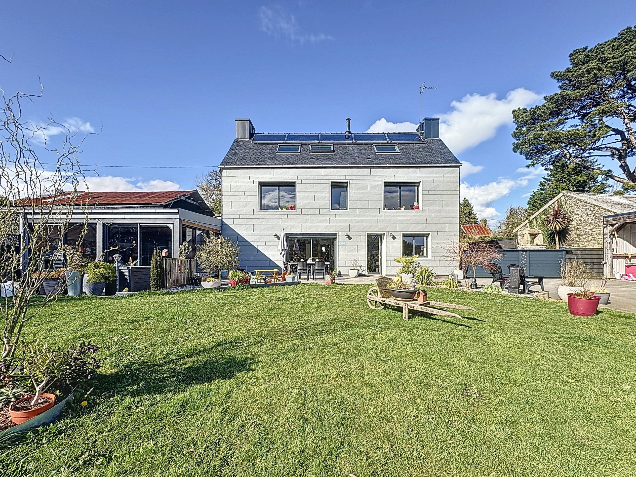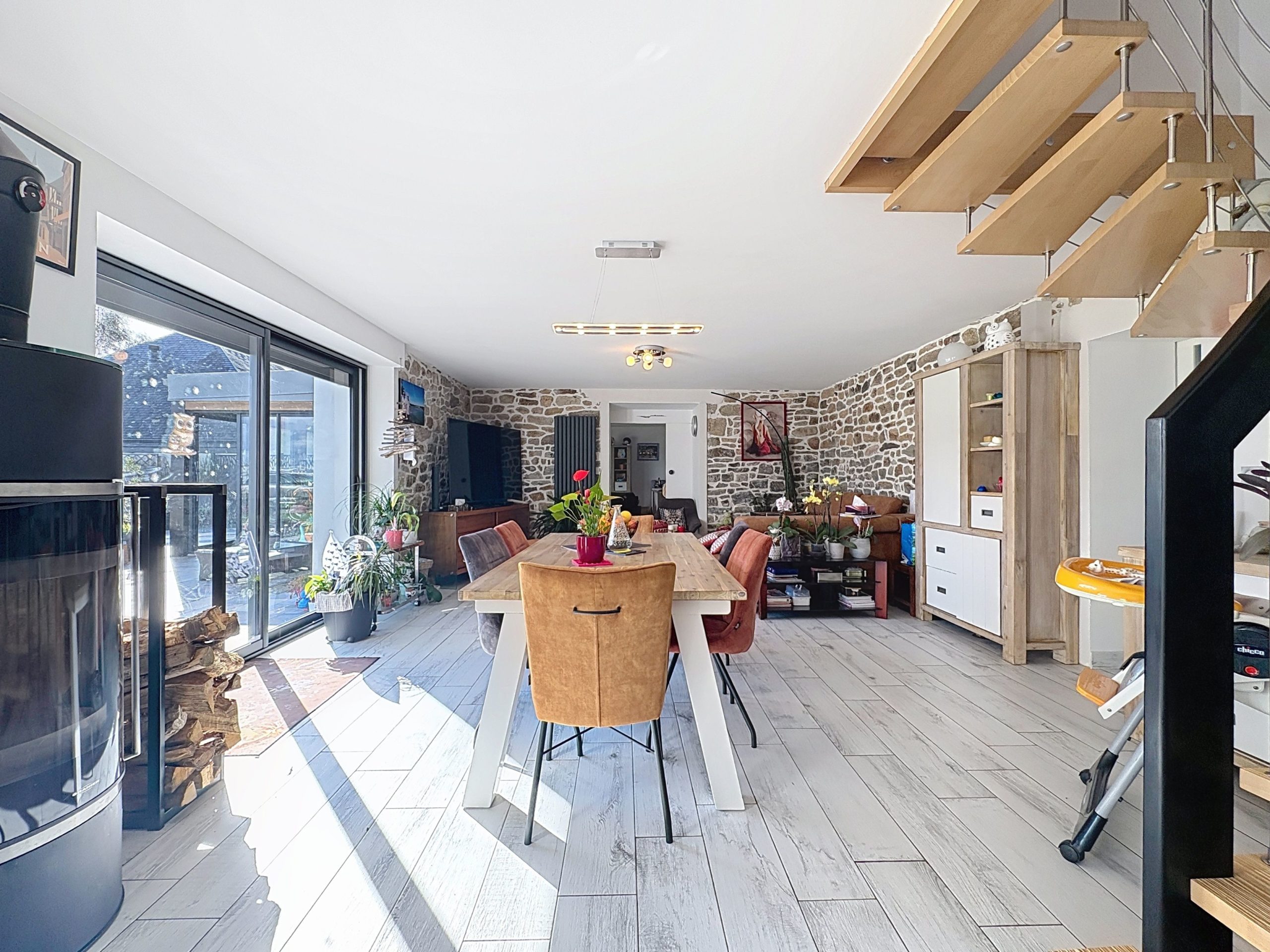 CAUDAN – Située dans un hameau au cadre calme et agréable, cette maison en pierre, entièrement réhabilitée en 2020, allie charme de l’ancien et confort moderne. Édifiée sur un terrain de plus de 1 700 m², elle offre un espace de vie lumineux de 50 m² avec un salon-séjour équipé d’un poêle à bois et une cuisine aménagée et équipée, le tout bénéficiant d’une belle luminosité grâce à son exposition sud et aux grandes baies vitrées. Un second salon, pouvant être aménagé en chambre avec sa salle d’eau attenante, ainsi qu’un WC, une buanderie spacieuse et une véranda complètent le rez-de-chaussée. À l’étage, deux grandes chambres et une salle d’eau moderne avec WC. L’espace supérieur offre 45 m² au sol et permet d’aménager une suite parentale ou deux chambres supplémentaires. La maison est équipée d’un système de chauffage performant associant une poêle à bois bouilleur et l’énergie solaire, permettant une maîtrise des dépenses énergétiques. À l’extérieur, un jardin sans vis-à-vis avec vue dégagée sur la forêt, un double carport avec borne électrique et un hangar de stockage viennent compléter ce bien.