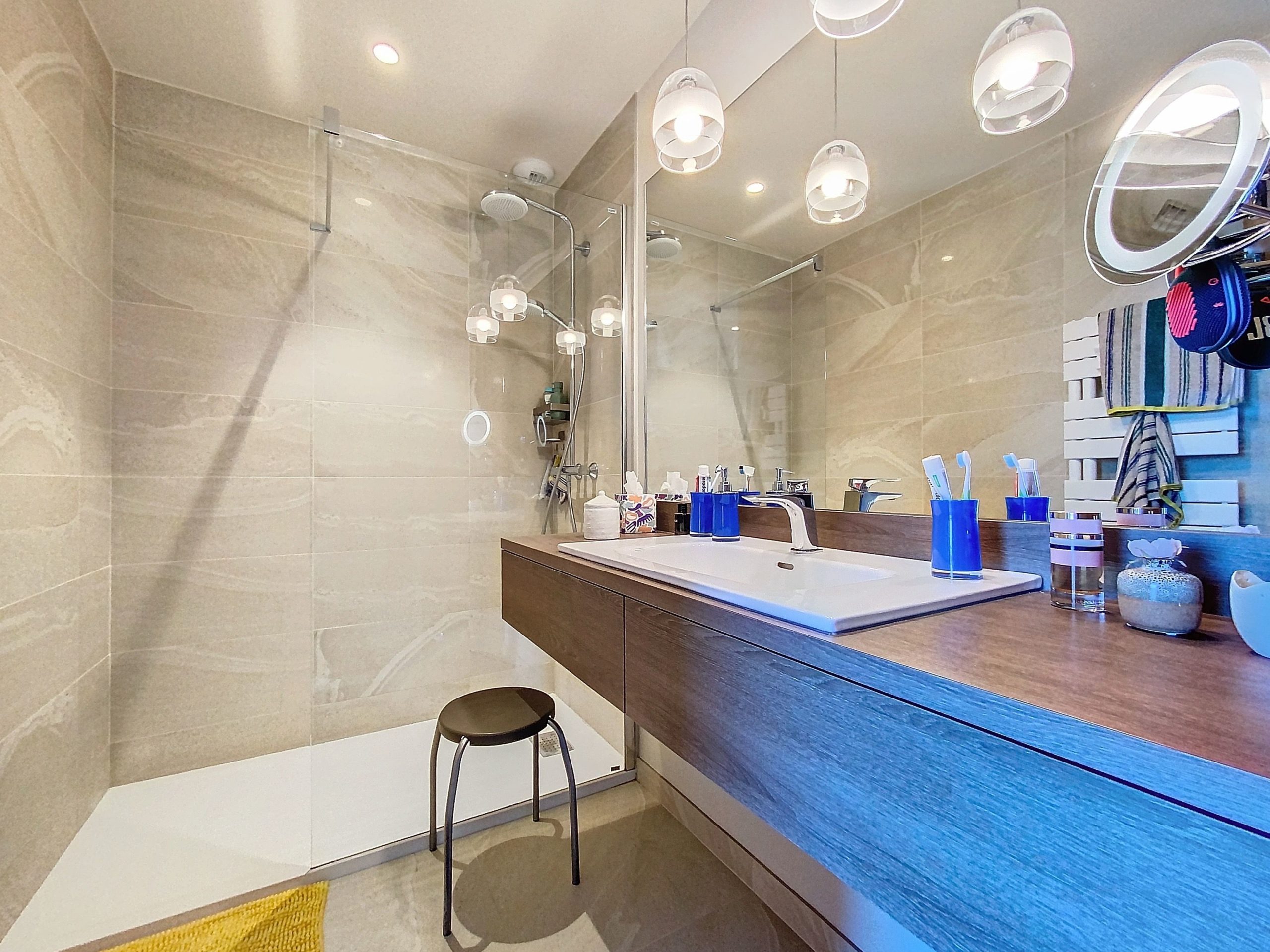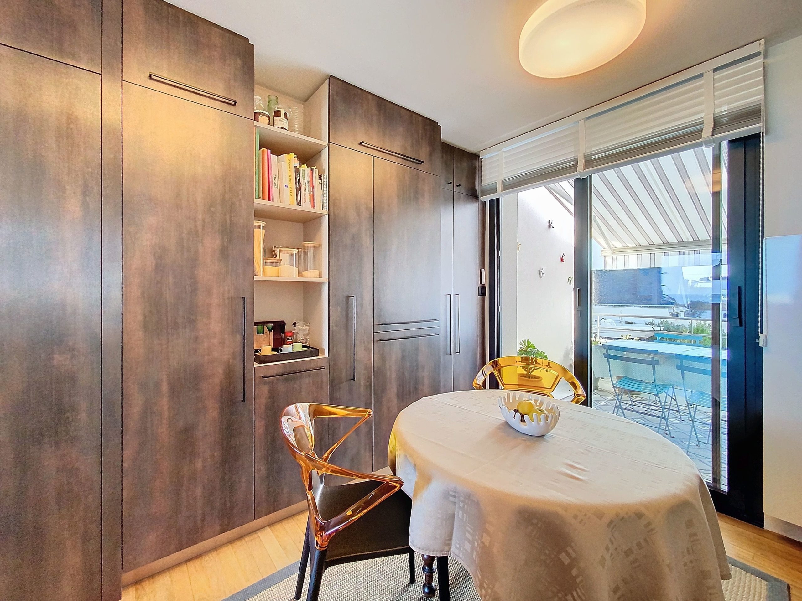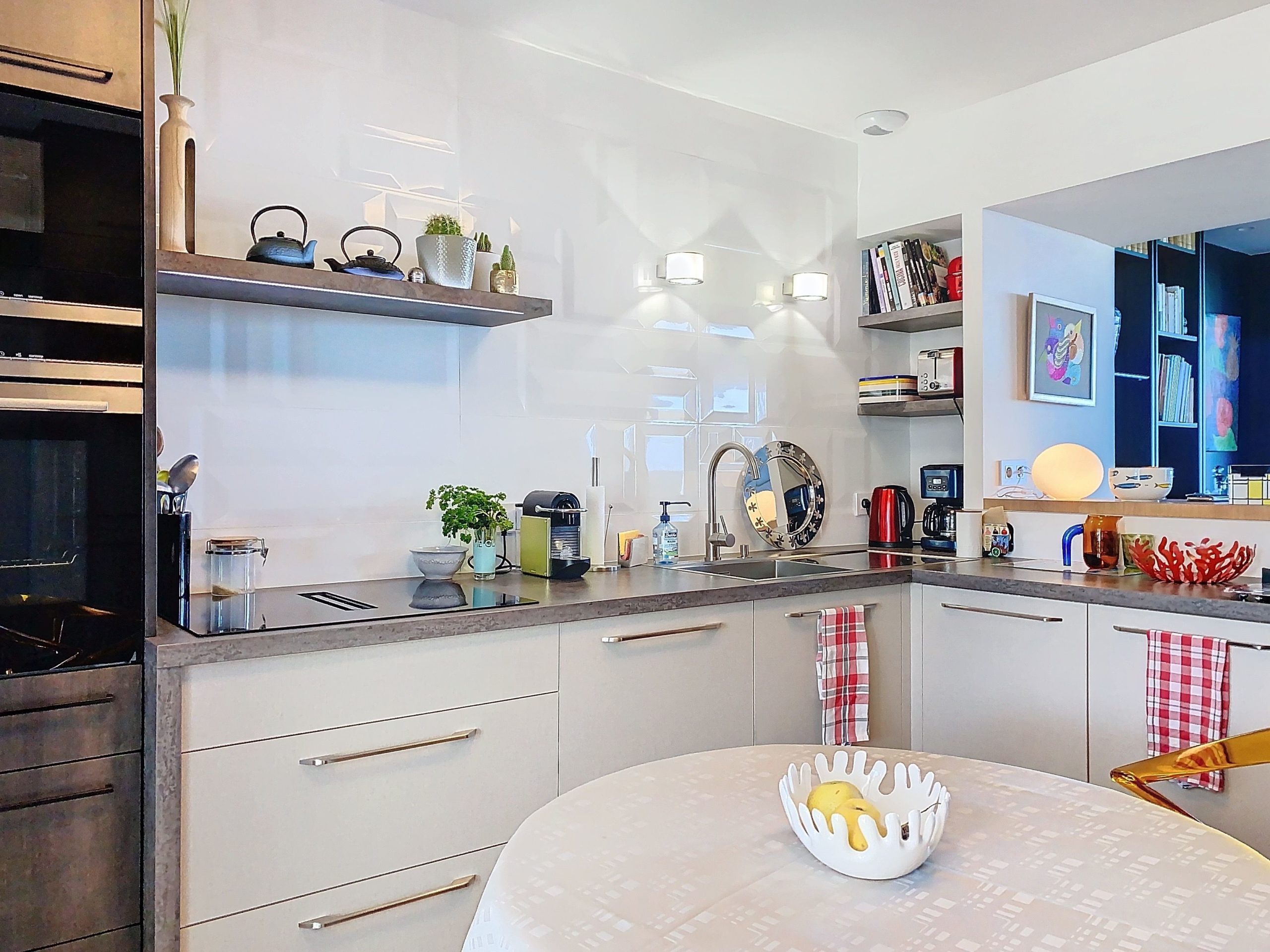 PLOEMEUR – Sur le secteur du Fort-Bloqué, installez-vous dans ce magnifique appartement entièrement refait à neuf avec des prestations haut de gamme. Ce T4 très lumineux et meublé avec goût se trouve au 1er étage d’une petite copropriété joliment décorée de 3 appartements, il se compose d’une belle pièce de vie donnant accès sur une terrasse pleine vue mer exposée Ouest, une cuisine entièrement aménagée et équipée donnant accès à une terrasse côté Est, une suite parentale vue mer avec salle d’eau et dressing, une chambre et un espace bureau ou chambre avec une salle d’eau. Cet appartement dispose d’une grande cave et de deux places de parking.