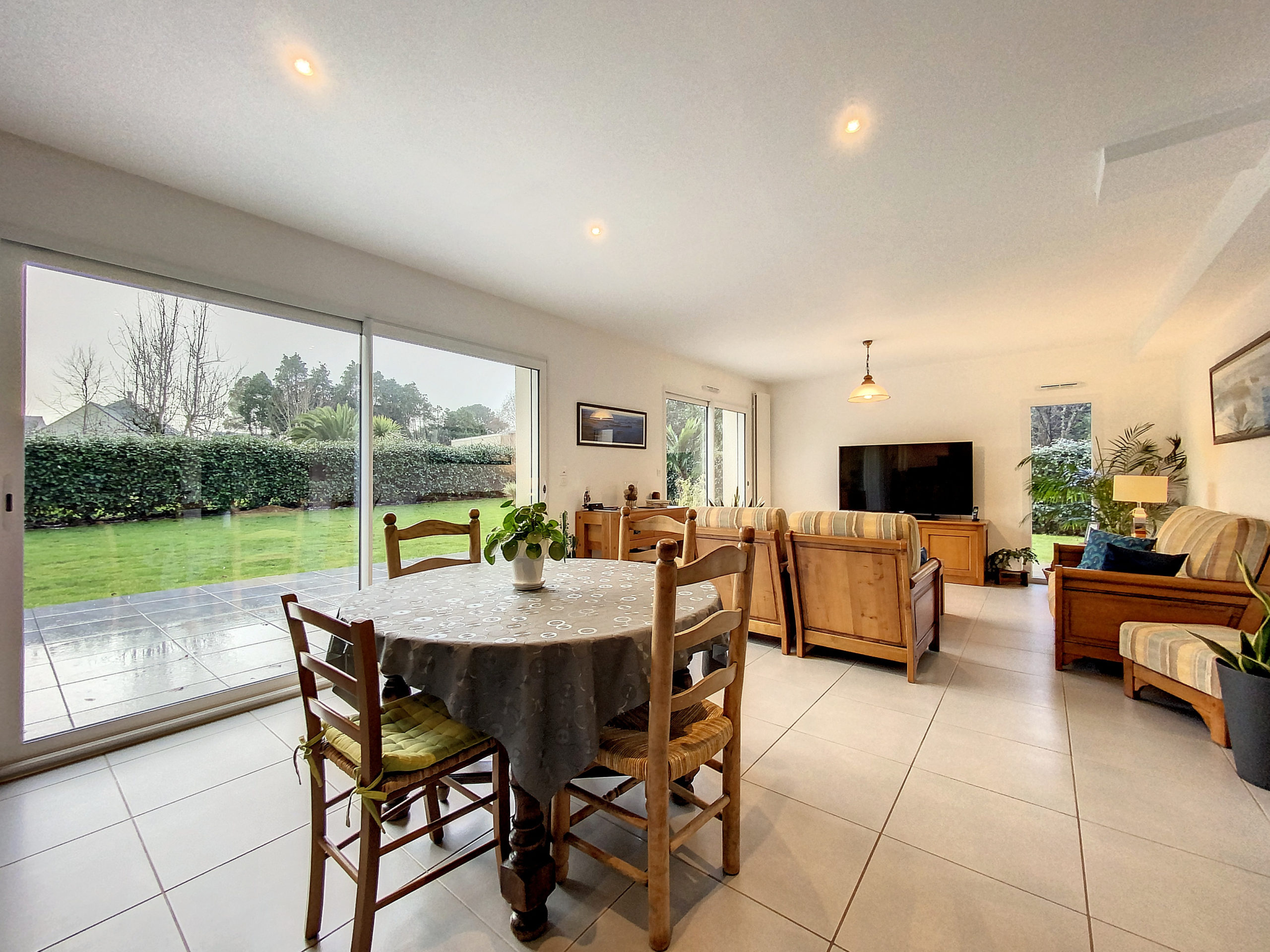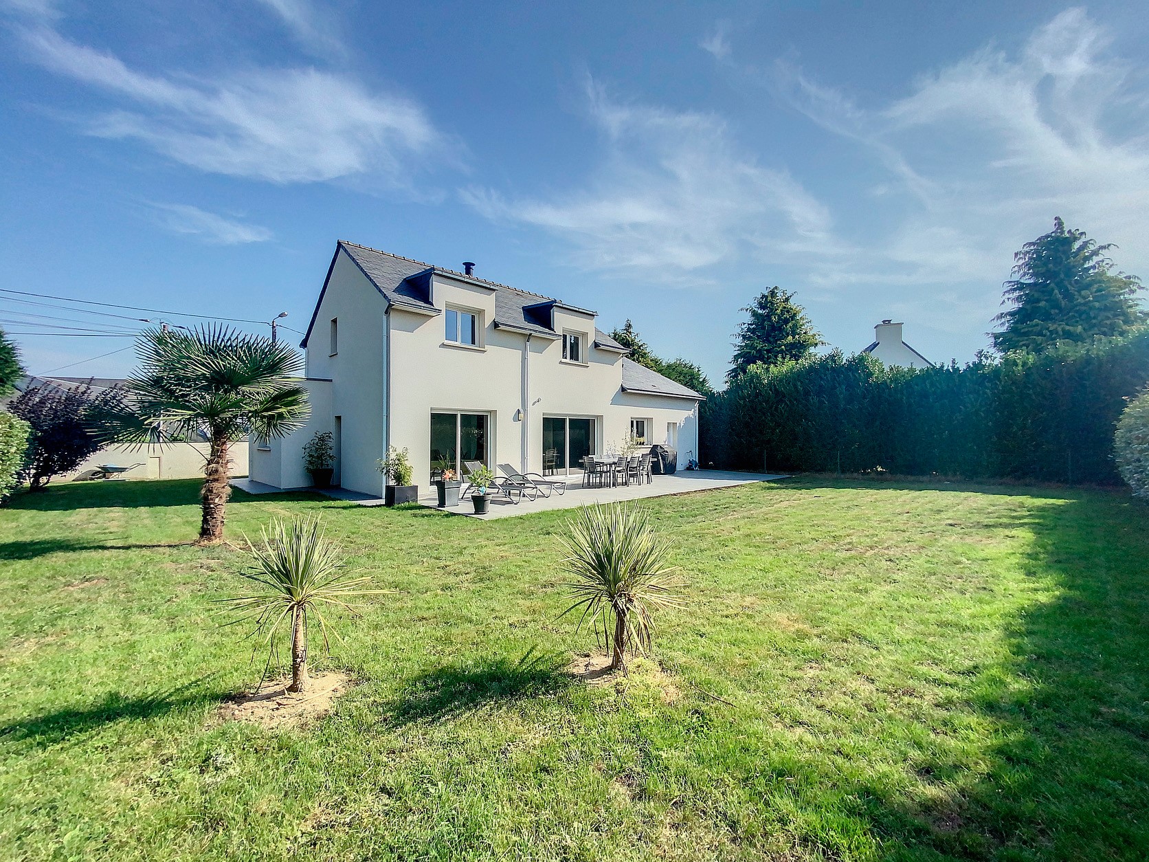 GUIDEL – EN EXCLUSIVITE – Coup de coeur assuré pour cette jolie maison contemporaine offrant une vie complète en rez-de-chaussée avec une entrée, une suite parentale avec dressing et salle d’eau privative, une cuisine aménagée et équipée , ouverte sur une lumineuse pièce de vie, un cellier. un wc. A l’étage, elle vous propose un dégagement avec coin bureau, deux chambres avec placards et une salle de bains avec wc. Garage avec grenier .