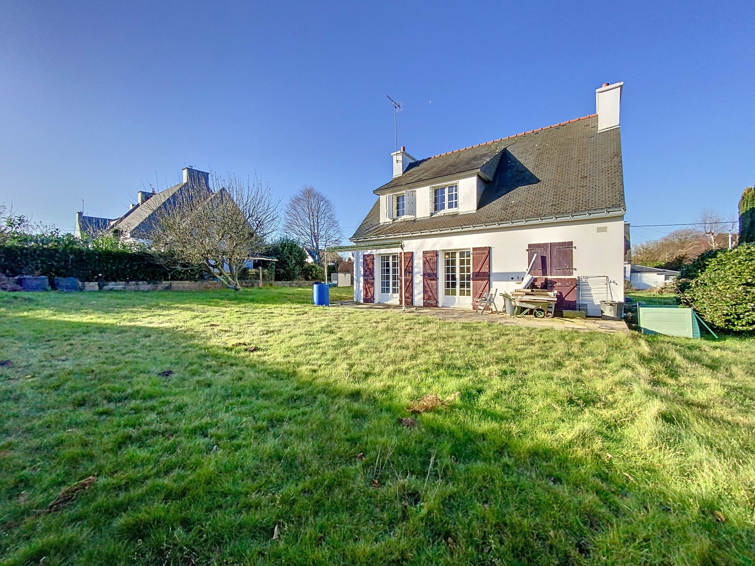 GUIDEL – Charmante maison sur grande parcelle de 1000m², vous tomberez sous le charme de l’environnement calme et verdoyant. Elle se compose au rdc: entrée, cuisine séparé, salon-séjour et un wc. À l’étage: 3 chambres, une salle d’eau et un wc. Garage avec buanderie et une terrasse bien exposée complètent ce bien.