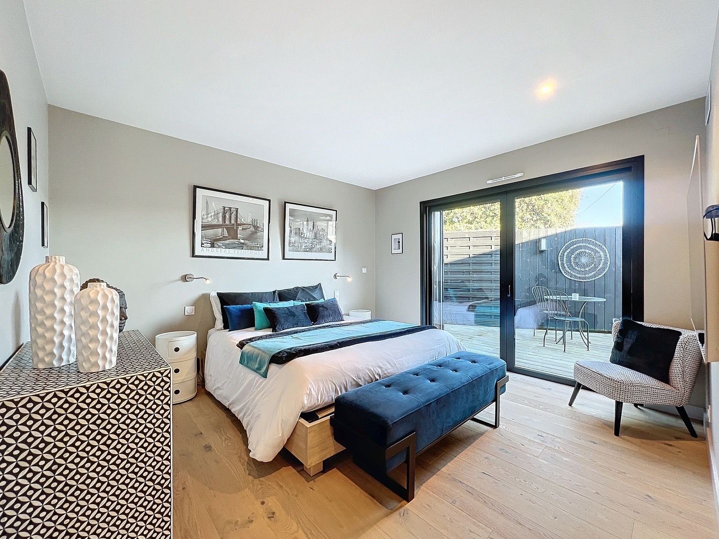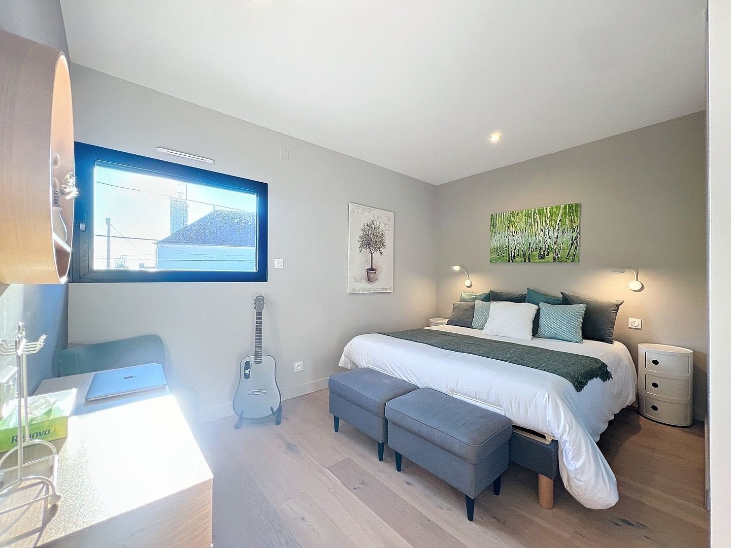 La maison dispose de quatre chambres, dont une somptueuse suite parentale avec dressing, salle d’eau privative et WC, vous garantissant intimité et confort. Une salle d’eau supplémentaires et deux WC. viennent compléter l’espace de vie.