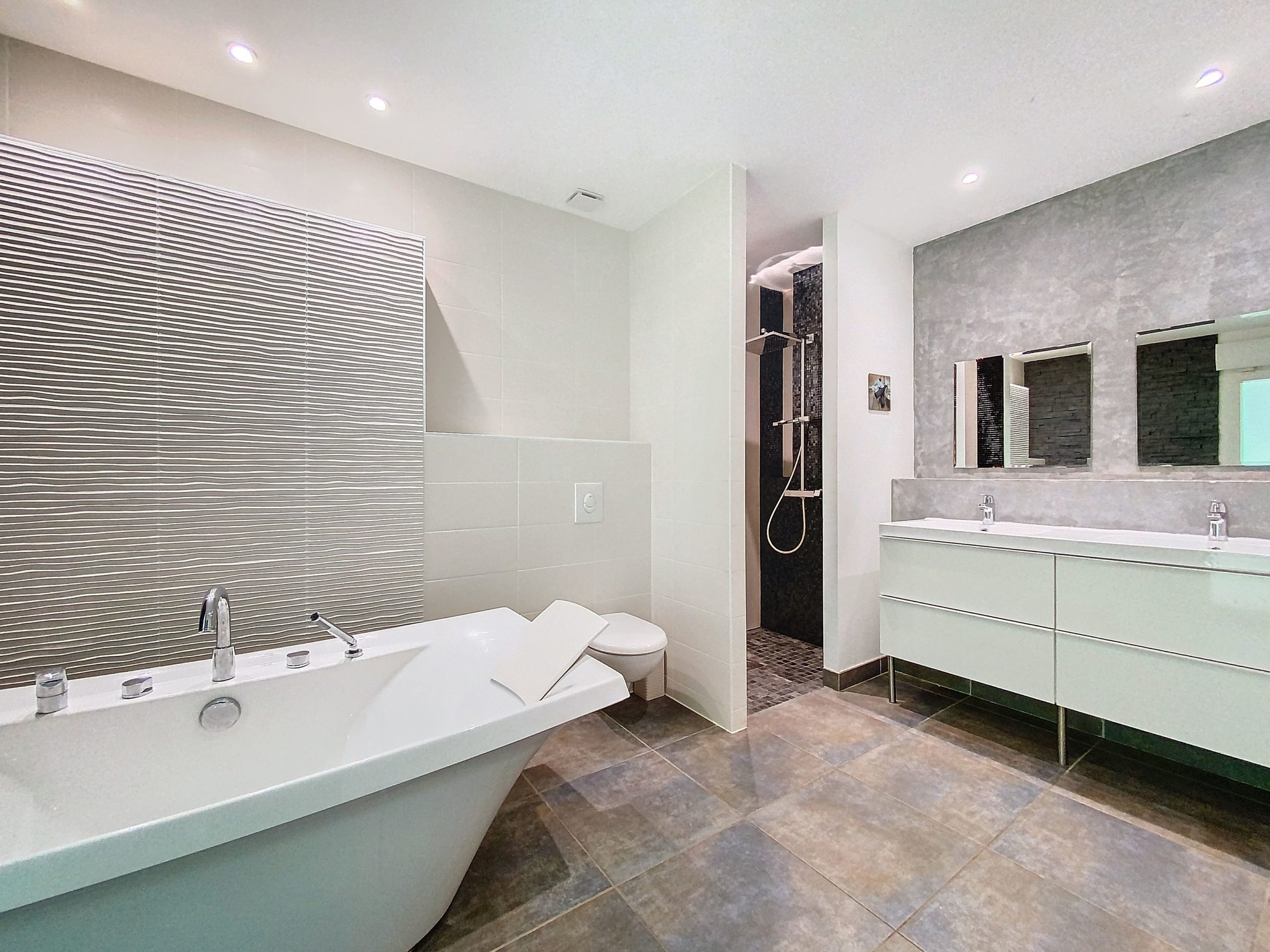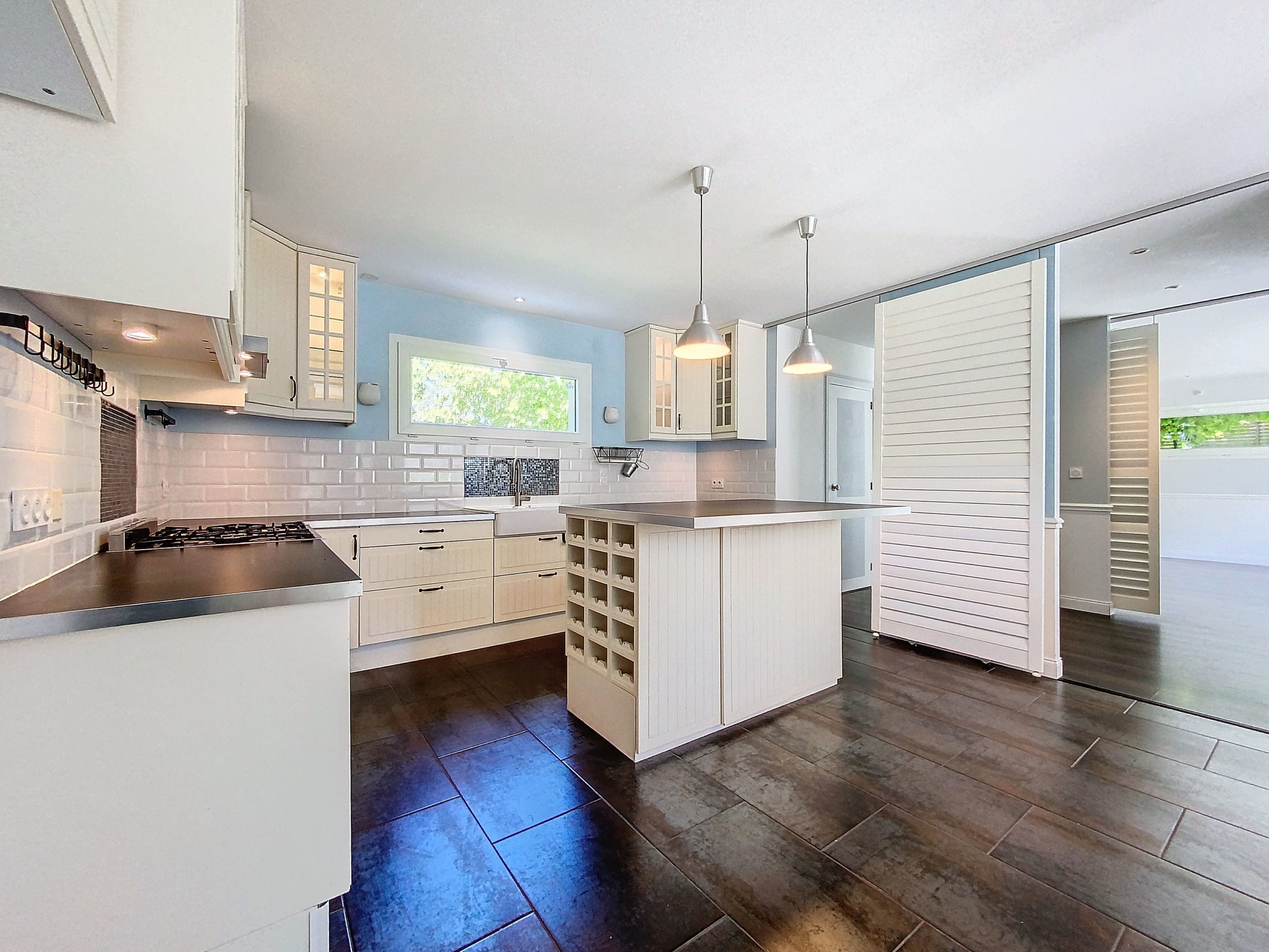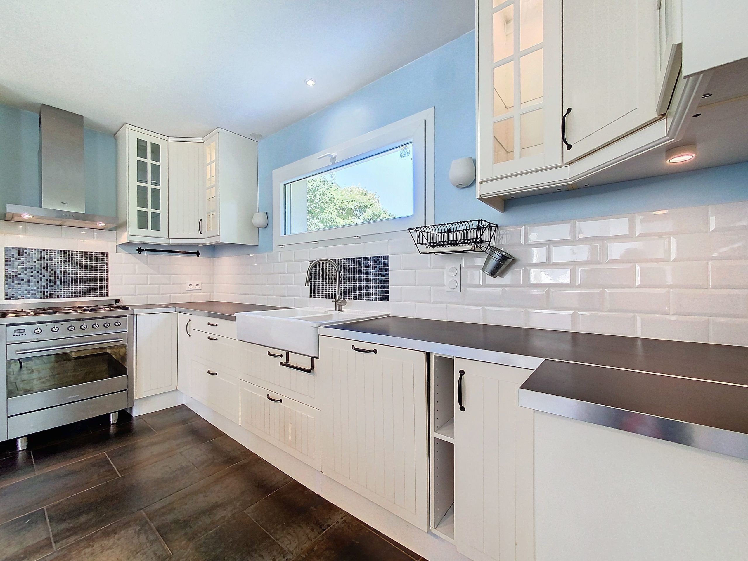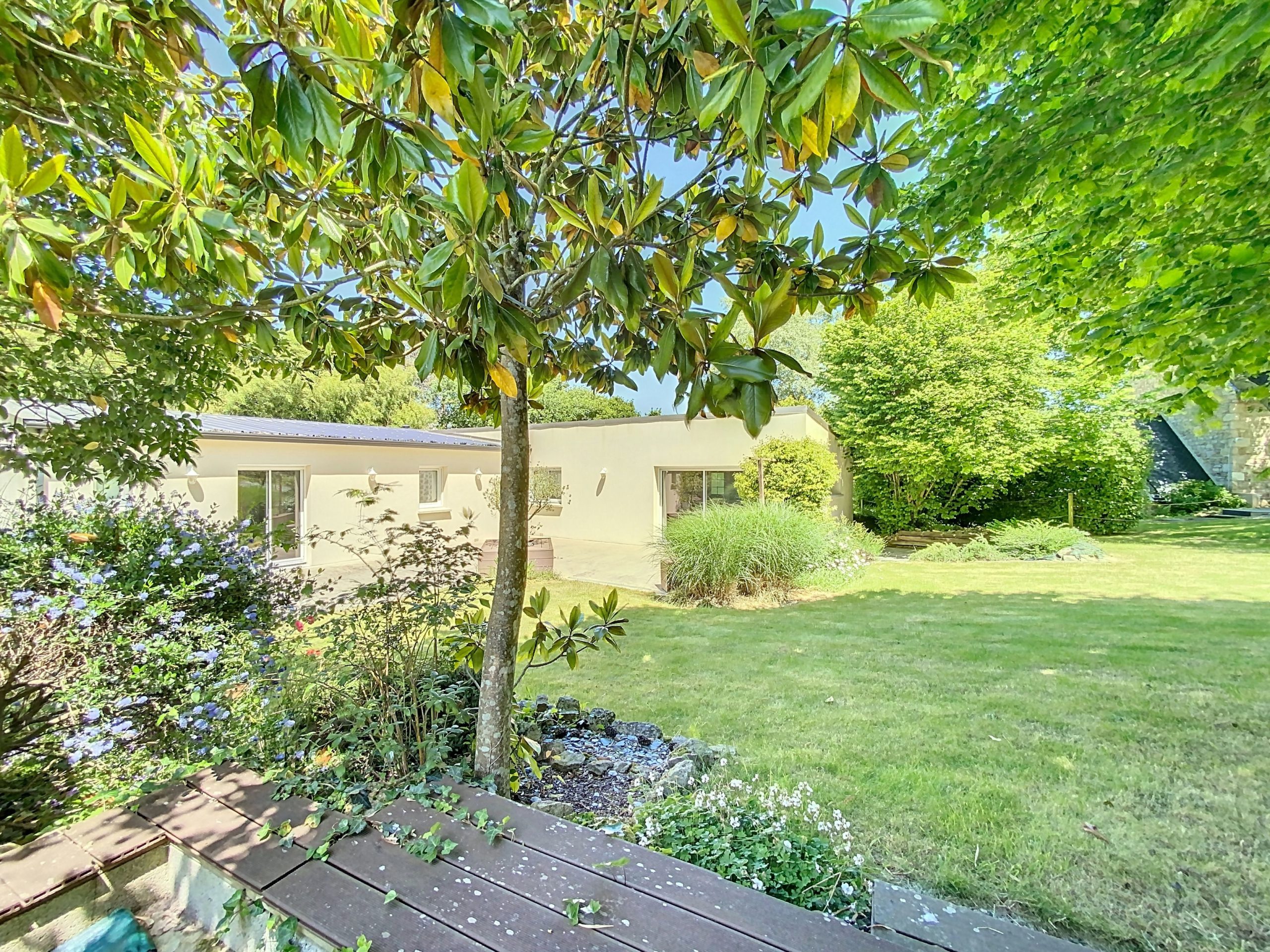 GUIDEL – Maison contemporaine de plain pied idéalement située. Vous trouverez: une entrée, un séjour-salon, une cuisine aménagée et équipée, un coin bibliothèque, un bureau, quatre chambres dont une avec salle d’eau privative, un wc séparé et une salle de bains avec baignoire, douche et wc. Double garage avec espace de stockage et buanderie, terrasse avec jardin sans vis à vis.