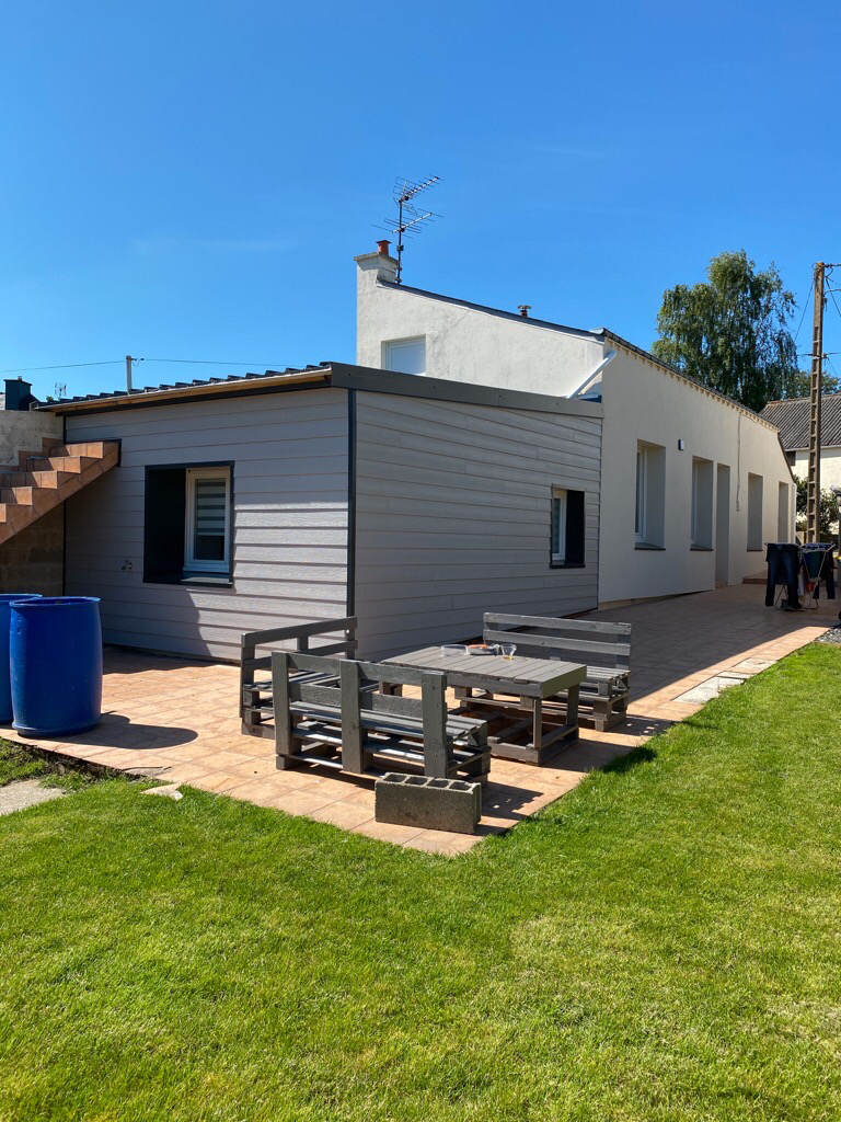 HENNEBONT- Cette maison vous offre une vie de plain-pied avec une pièce de vie avec cuisine aménagée et équipée, deux chambres, un dégagement, une salle de bains avec wc.