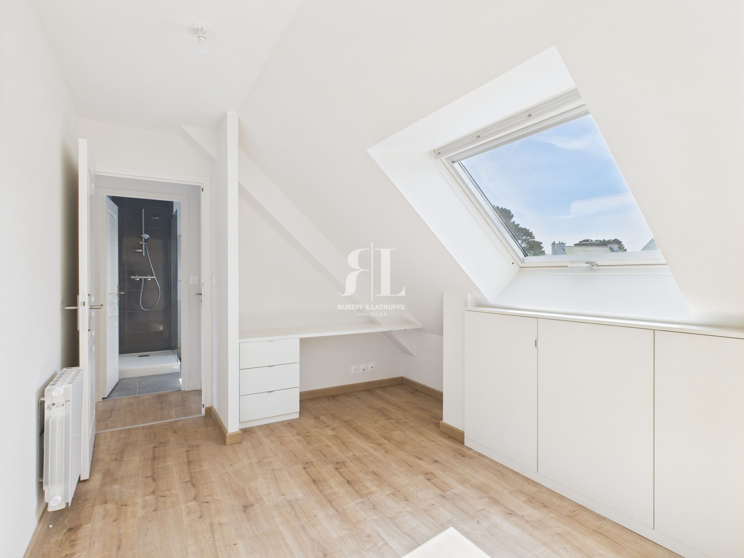 LARMOR PLAGE – T2 BIS AVEC VUE IMPRENABLE SUR LE PORT- En exclusivité , à seulement 10 minutes de Lorient , à proximité du port de plaisance , des plages , des commerces de la station balnéaire et des transports en commun de Larmor Plage, cet appartement niché au deuxième et dernier étage d’une petite copropriété de trois logements séduit dès la première visite. Entièrement rénové avec des prestations de qualité , d’une surface au sol de 75 m² (54,4 m² Carrez), ce T2 bis offre un cadre de vie cosy, avec une belle vue dégagée sur le port de Kernevel et la rade. Les volumes optimisés créent une atmosphère douce et fonctionnelle. La cuisine équipée et aménagée s’ouvre sur la pièce de vie lumineuse et sur un balcon pour profiter de la vue. L’espace nuit se compose d’une chambre principale avec placard et d’un coin nuit complémentaire avec agencement d’un bureau et de placards, d’une salle d’eau et d’un wc . L’ensemble bénéficie de deux stationnements extérieurs,. Un bien rare par sa situation, sa vue et par la qualité de ses prestations. Une visite s’impose pour en apprécier pleinement le charme. Copropriété en cours de création.