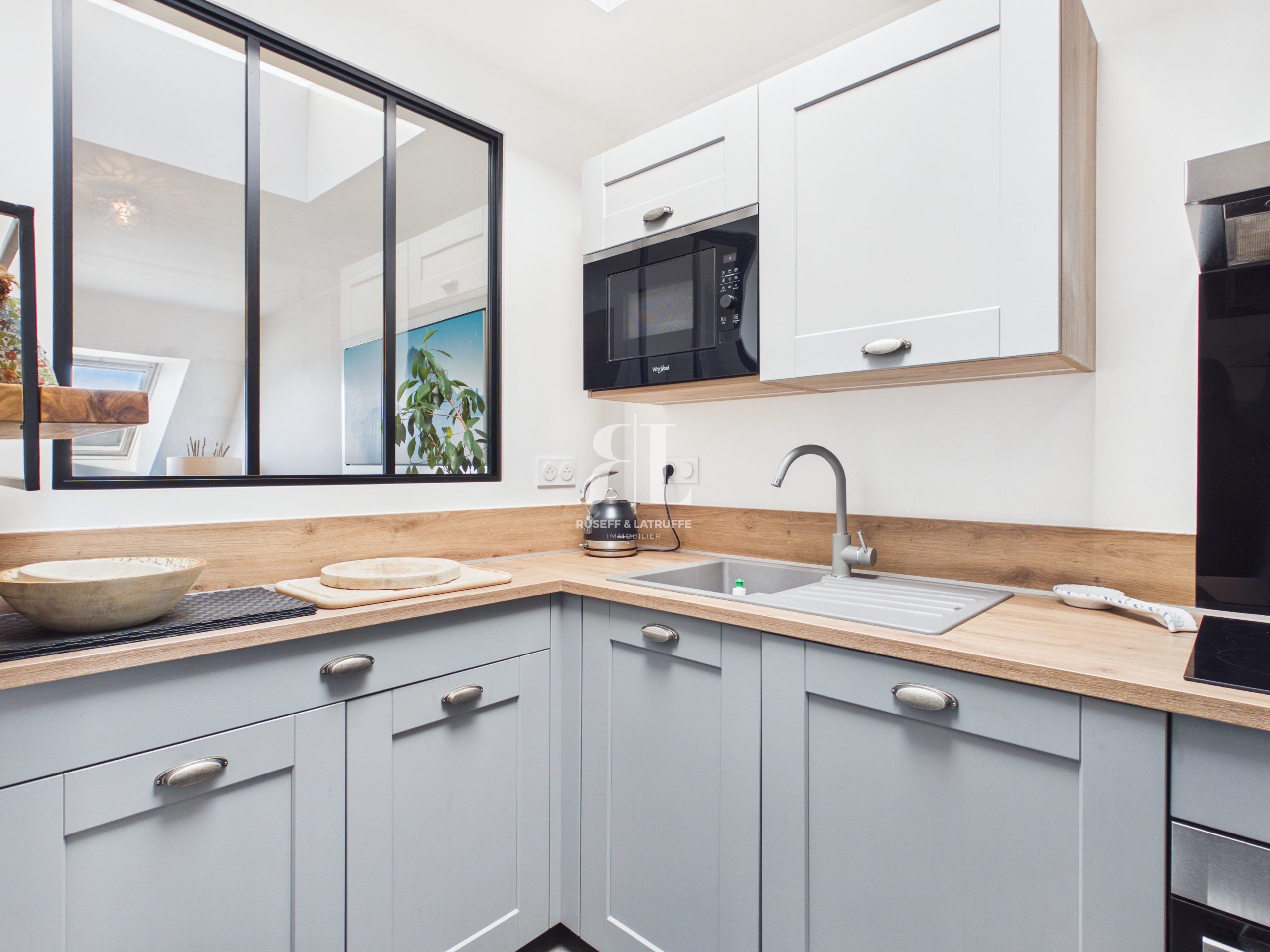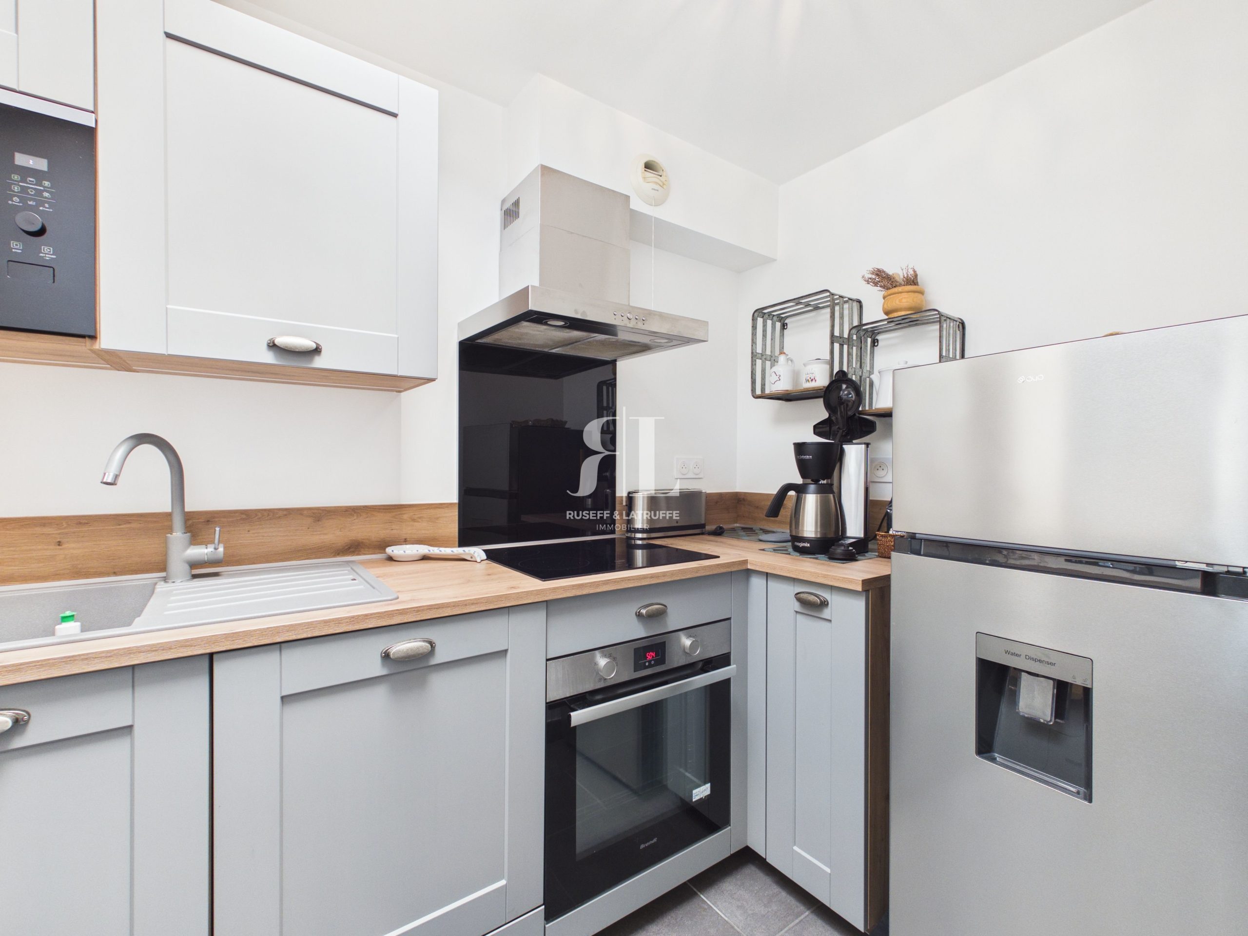 L’appartement s’ouvre sur une agréable pièce de vie baignée de lumière, parfaite pour les moments de détente ou de convivialité. La cuisine, entièrement rénovée récemment, est fonctionnelle et pratique, apportant confort et modernité au quotidien.
