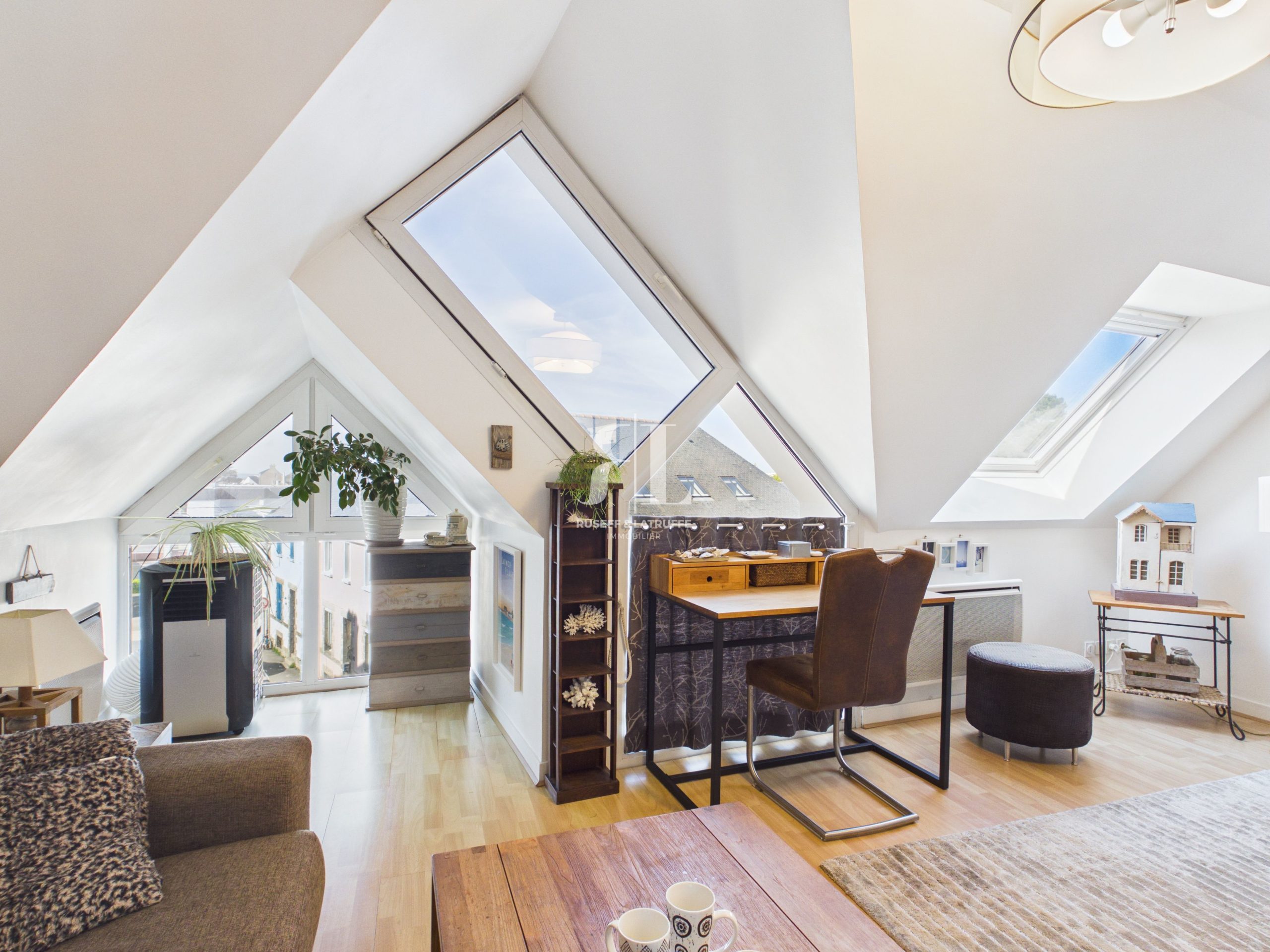 Situé au centre-ville de Larmor-Plage, cet appartement T3 occupant seul le dernier étage d’une copropriété de 17 lots offre un cadre de vie privilégié, à quelques pas des commerces et à proximité immédiate de la plage.