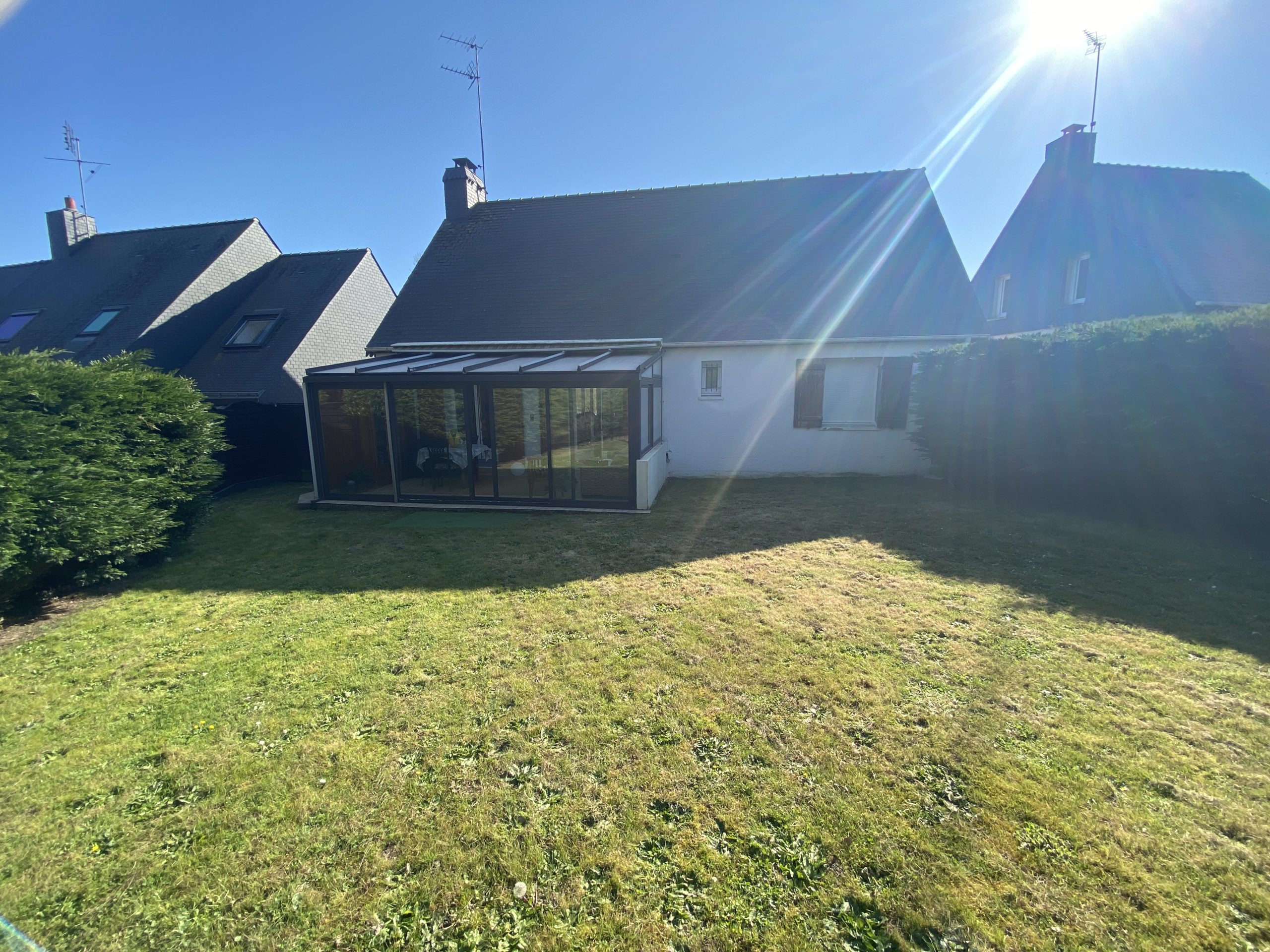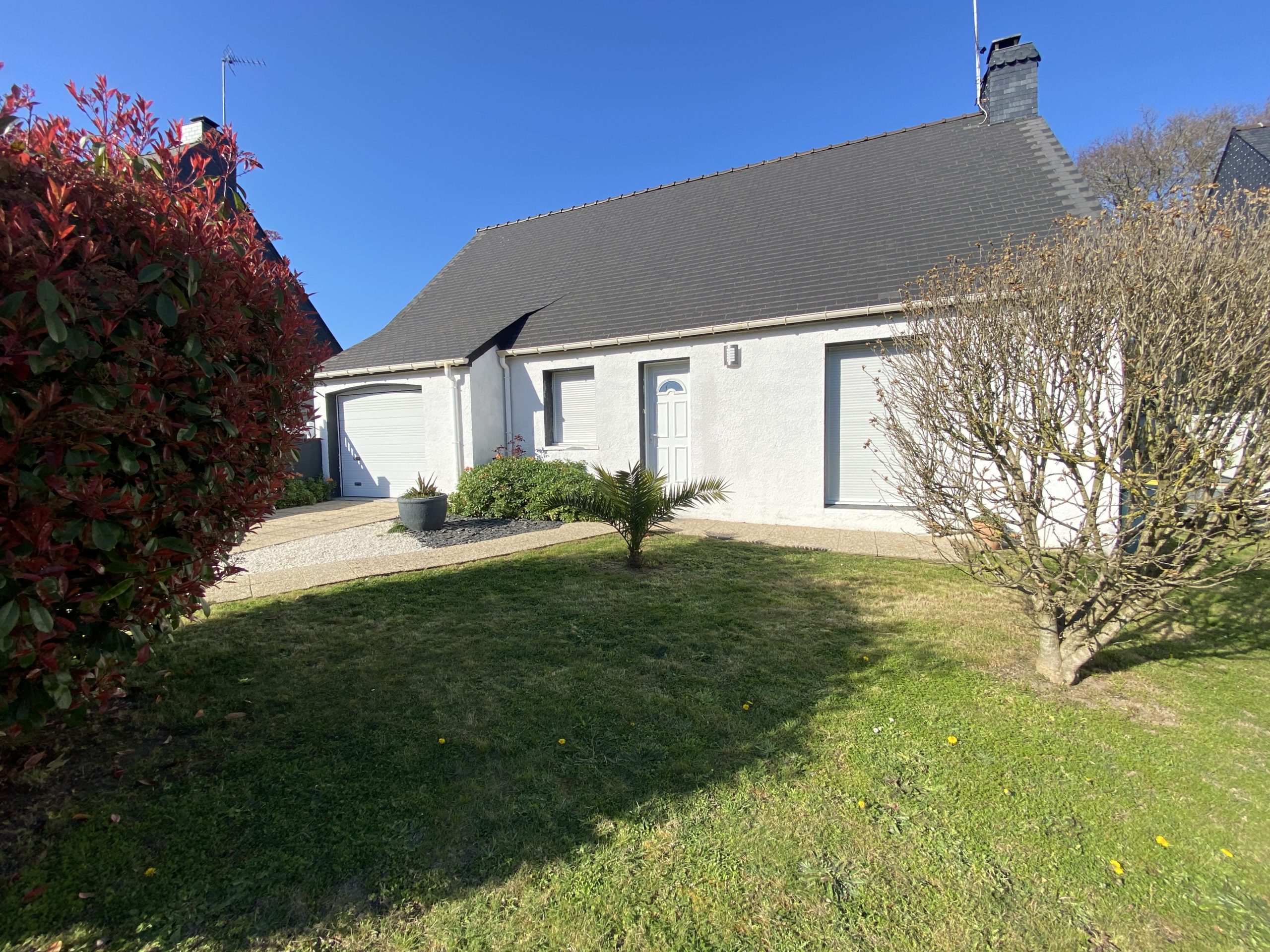 EN EXCLUSIVITE Ploemeur Lomener – Venez découvrir cette maison de plain-pied à 5 min à pied de la plage de l’anse du Stole. Cette maison dispose d’une cuisine ouverte sur un séjour pour une surface d’environ 45m2 et une véranda, 2 chambres, 1 salle d’eau et un garage. Possibilité d’extension sur un terrain de 700m2.