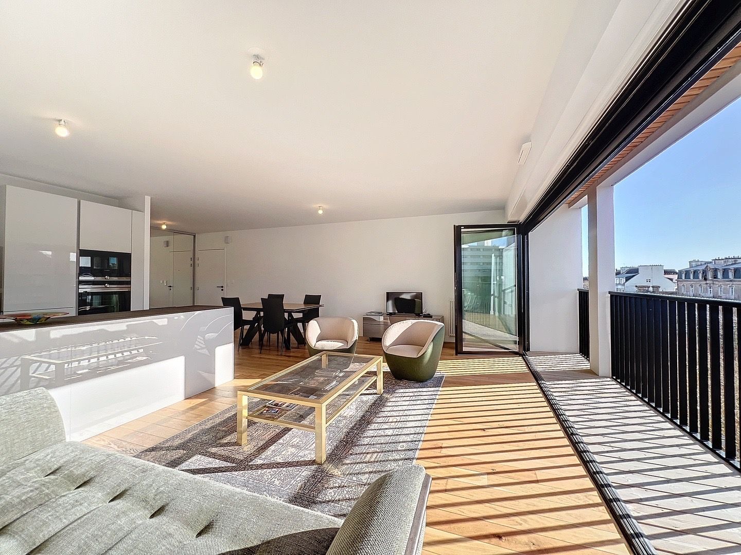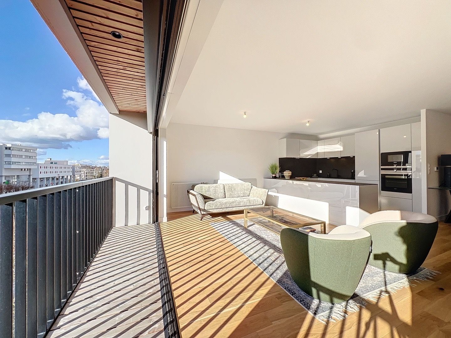 EXCLUSIVITE – LORIENT – Au 5ème étage d’une copropriété neuve de standing édifiée en 2023, proche des commerces et de toutes commodités, découvrez ce superbe appartement aux prestations haut de gamme. Dès l’entrée, vous serez accueillis par un vaste espace ouvert intégrant cuisine, séjour et salle à manger, baigné de lumière grâce à son exposition Ouest et aux grandes baies vitrées accordéon, sans montant, vous offrant une sensation d’intérieur-extérieur unique. Les deux chambres aux volumes agréables vous garantissent calme et sérénité. Une buanderie, une salle d’eau et un WC complètent l’ensemble. Un box en sous-sol vous offre un espace de stationnement sécurisé.