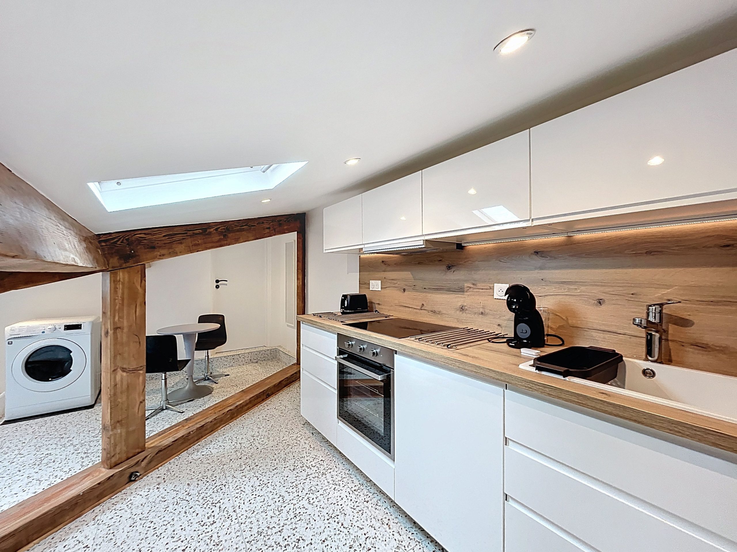 Chaque détail a été soigneusement pensé pour allier le charme de l’ancien et le confort contemporain, offrant une atmosphère à la fois chaleureuse, élégante et intemporelle.