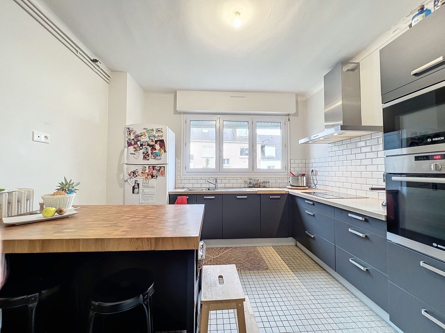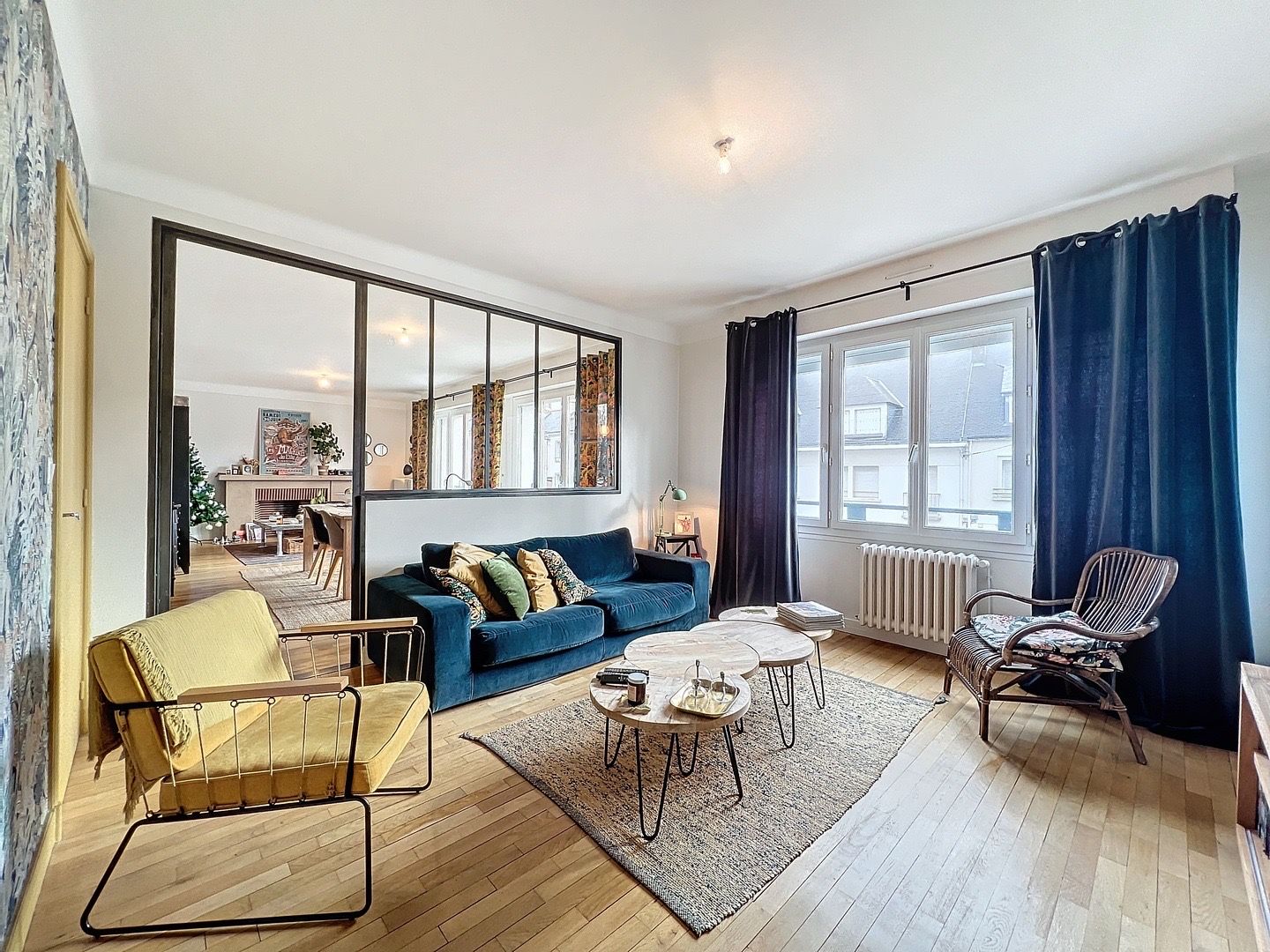 LORIENT – SPACIEUX APPARTEMENT qui vous offre les volumes d’une maison avec une entrée avec placards, une cuisine aménagée équipée , un salon-séjour avec cheminée, un dégagement , une salle de bains, un wc et quatre chambres.