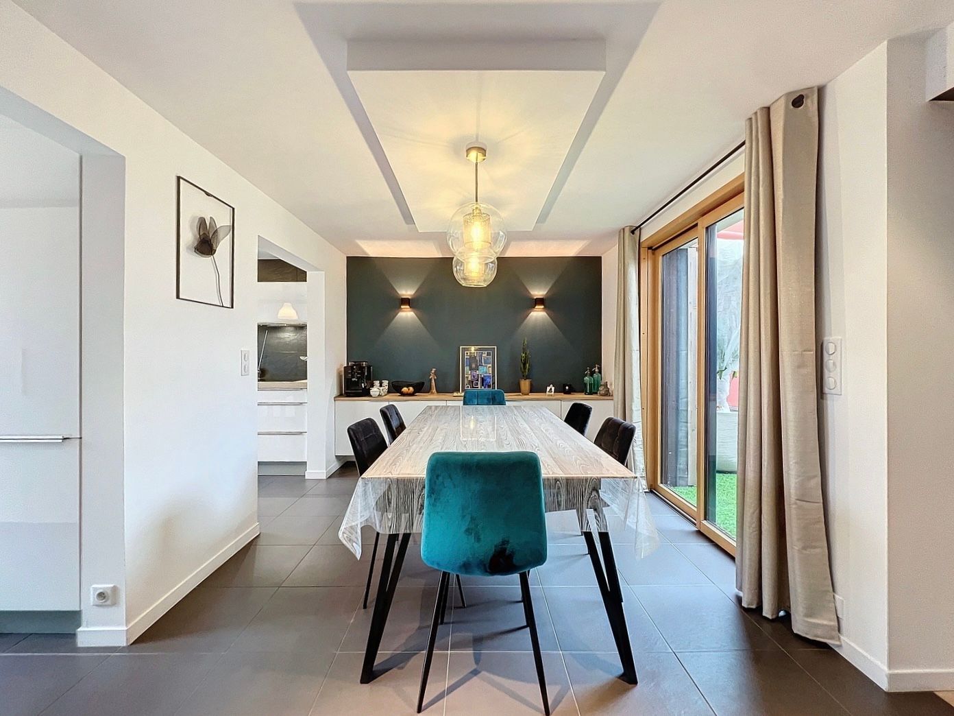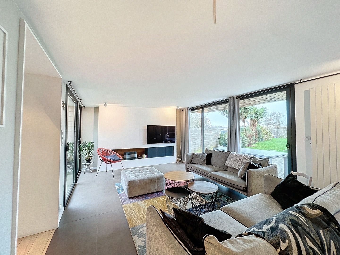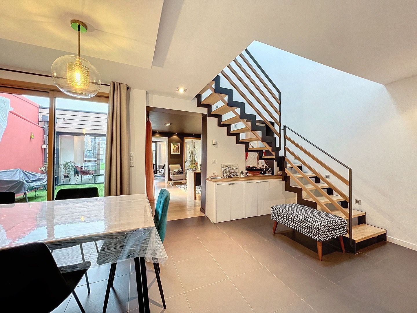 Vous profiterez d’un spacieux salon baigné de lumière naturelle, offrant un espace de vie convivial avec accès sur un grand jardin. Un élégant patio vous accueille, offrant un espace extérieur idéal pour les moments de détente en toute intimité.