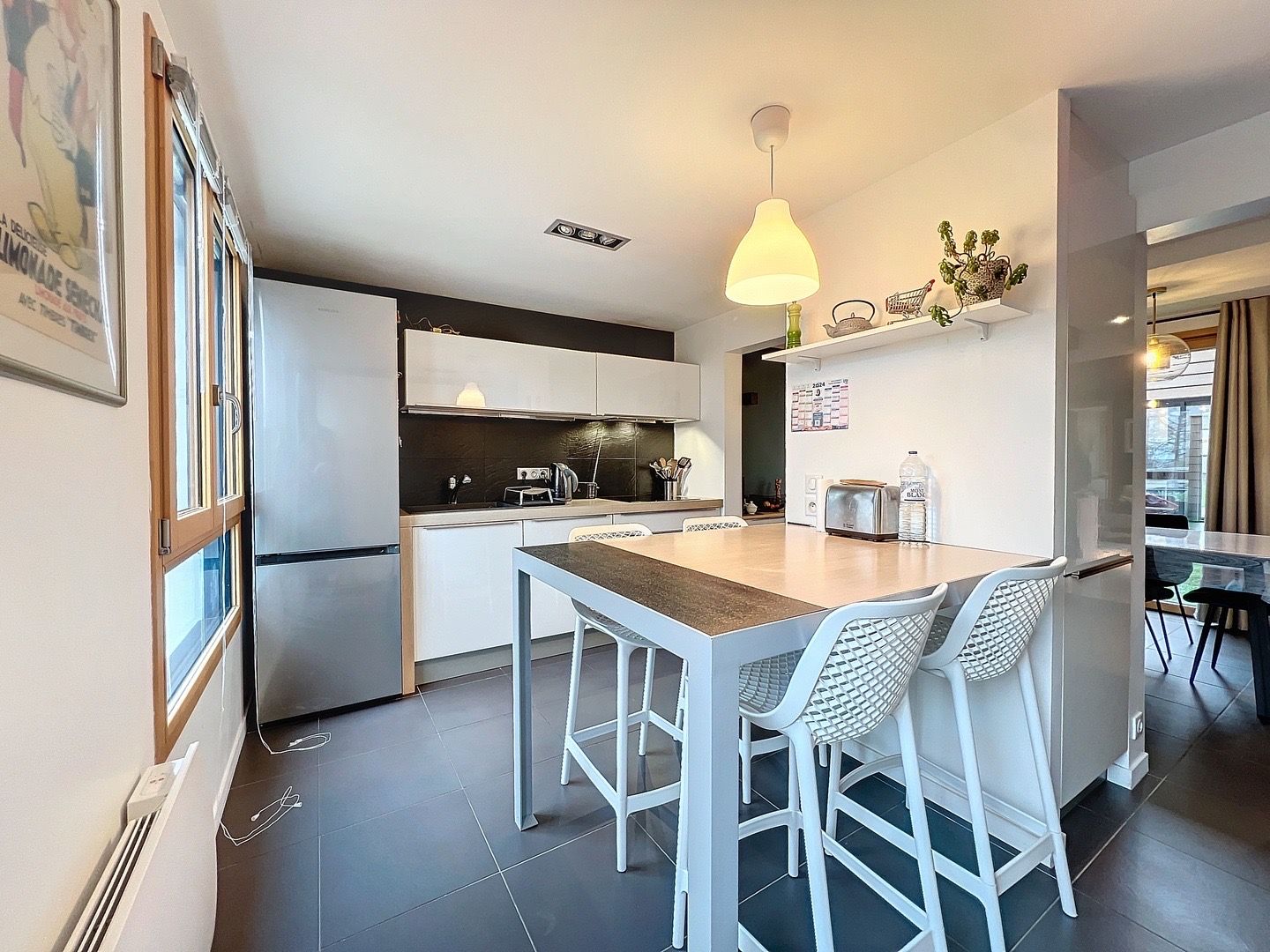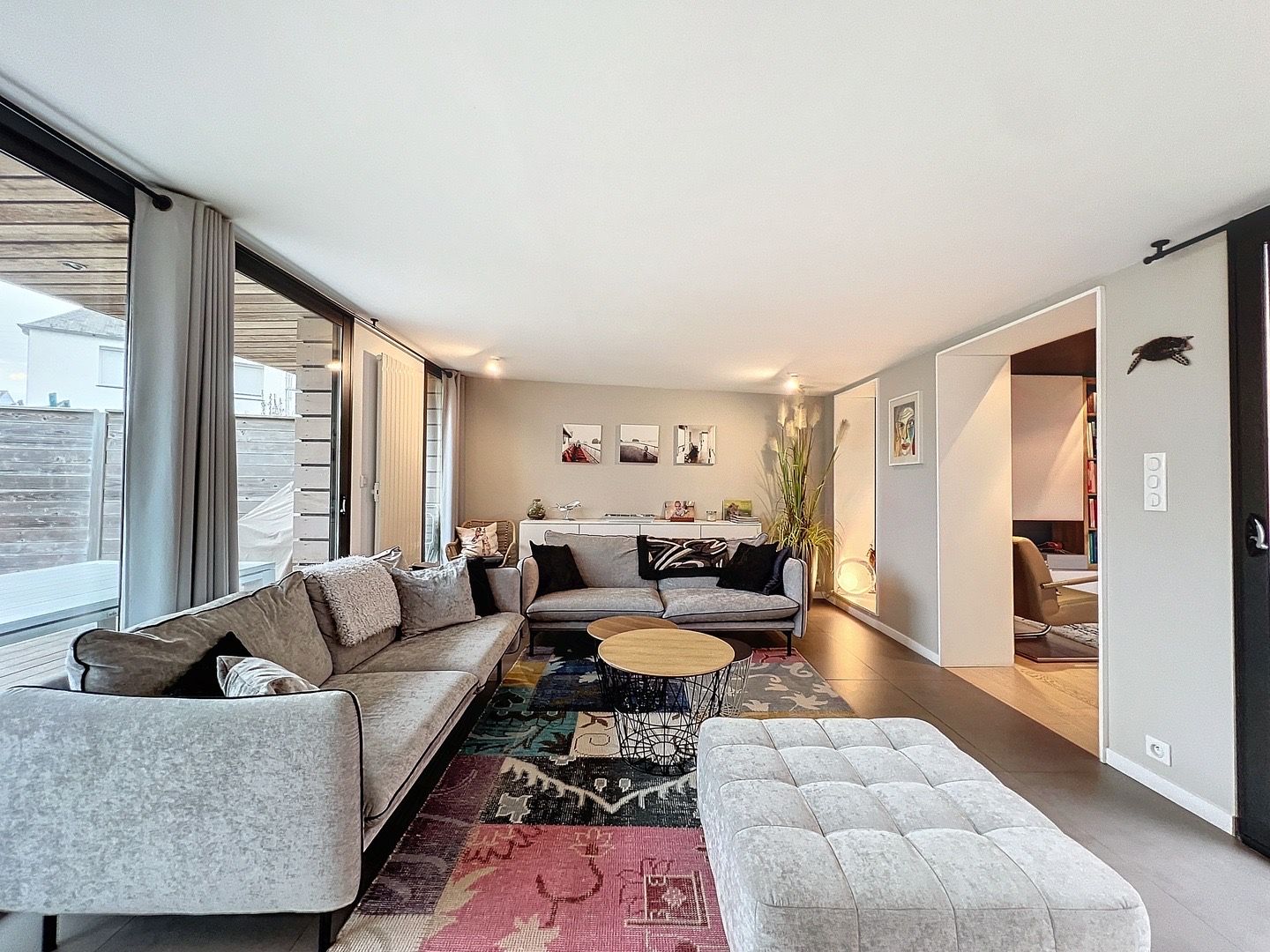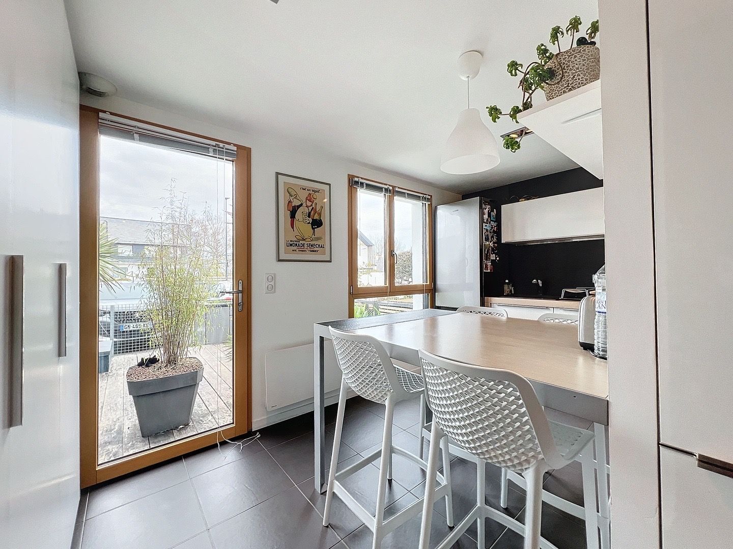 Vous profiterez d’un spacieux salon baigné de lumière naturelle, offrant un espace de vie convivial avec accès sur un grand jardin. Un élégant patio vous accueille, offrant un espace extérieur idéal pour les moments de détente en toute intimité.