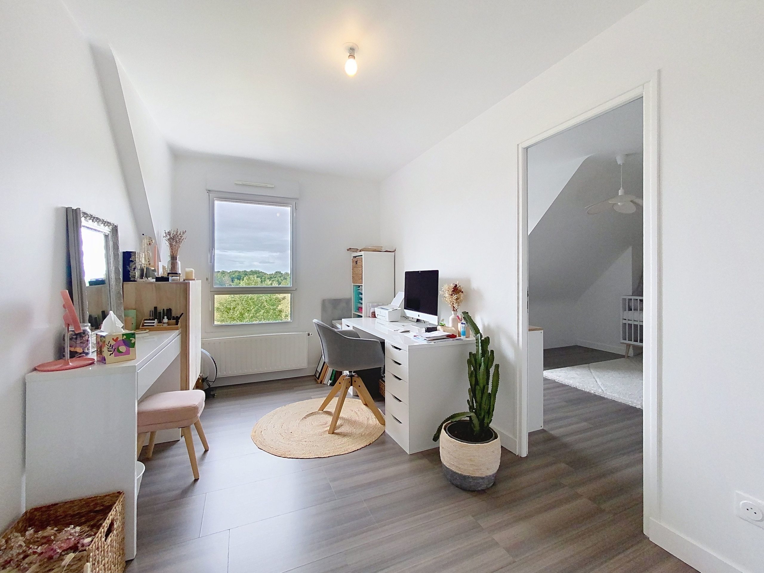 À l’étage, une mezzanine distribue harmonieusement trois chambres confortables, une salle de bains et un second WC, parfait pour une vie de famille.