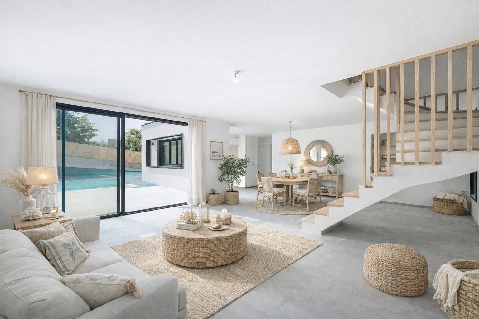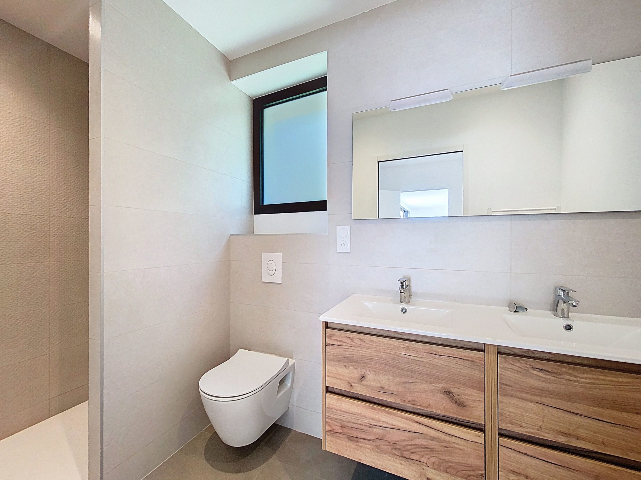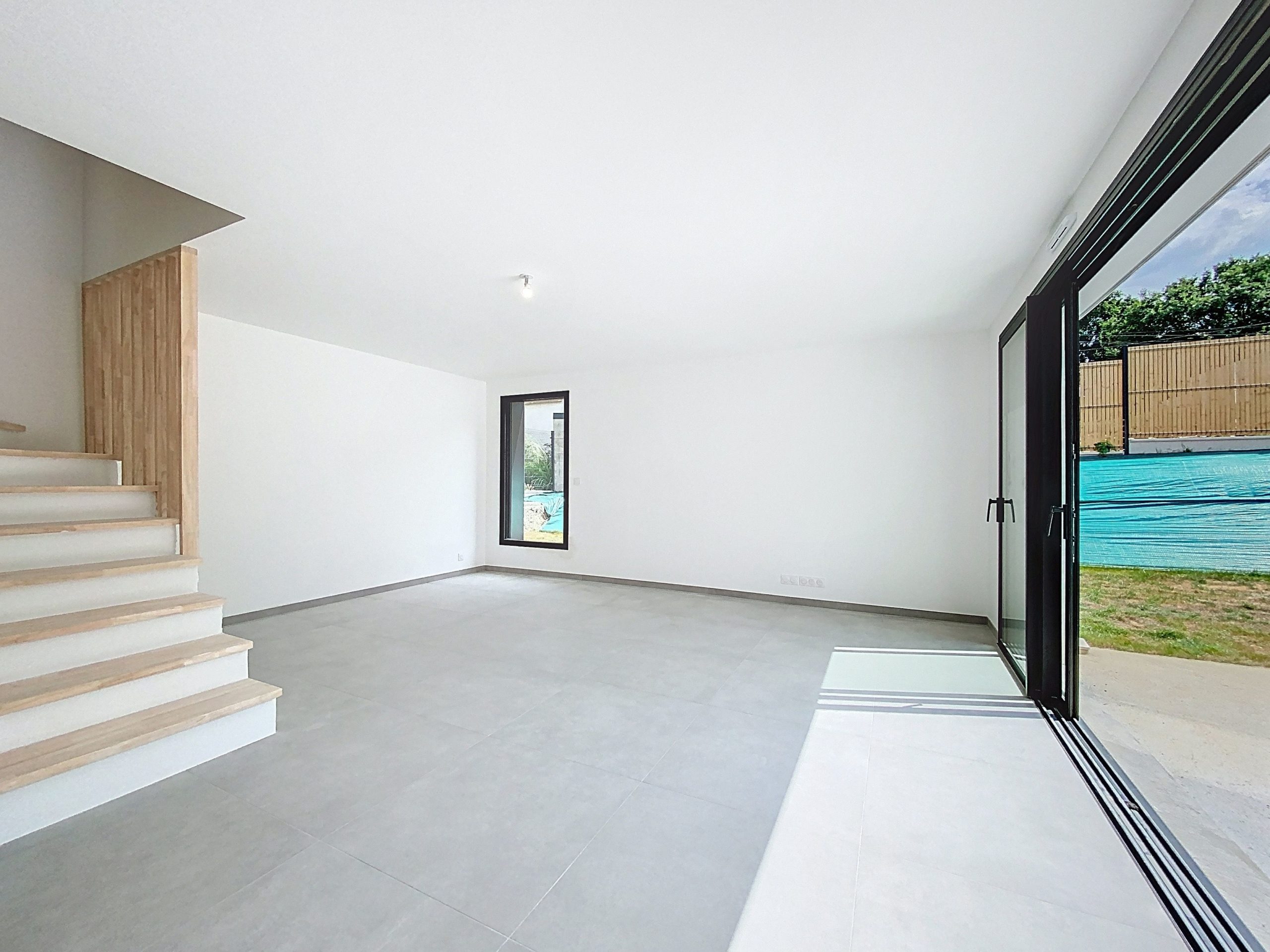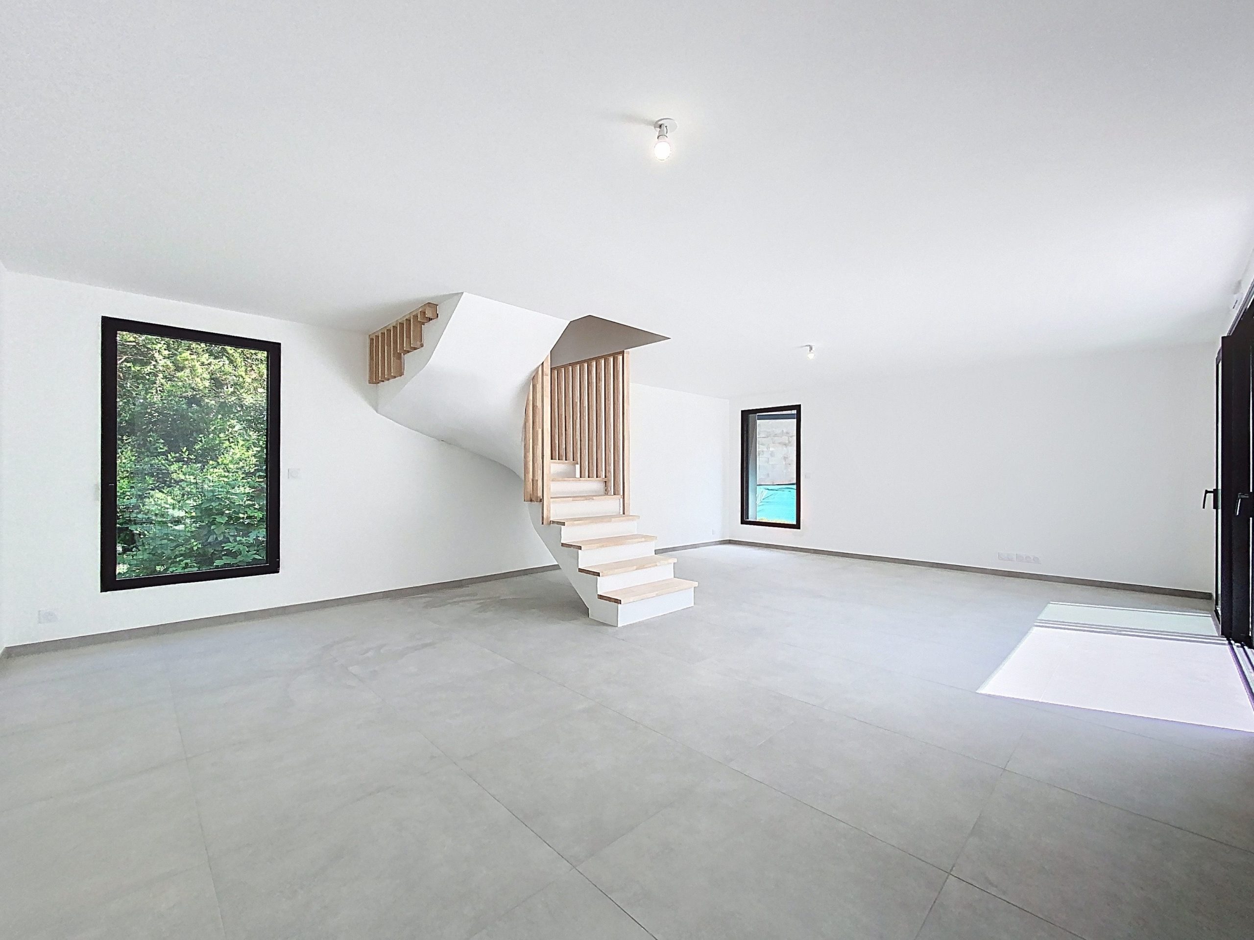 Dès l’entrée, un vaste hall donne le ton : lignes sobres, matériaux qualitatifs et clarté omniprésente. Le séjour de 47 m², baigné de lumière naturelle grâce à de larges ouvertures, s’ouvre sur une belle terrasse ensoleillée, promesse de moments privilégiés. L’espace cuisine, encore à imaginer selon vos envies, prolonge cette pièce de vie avec élégance. Un cellier attenant assure une fonctionnalité discrète au quotidien.