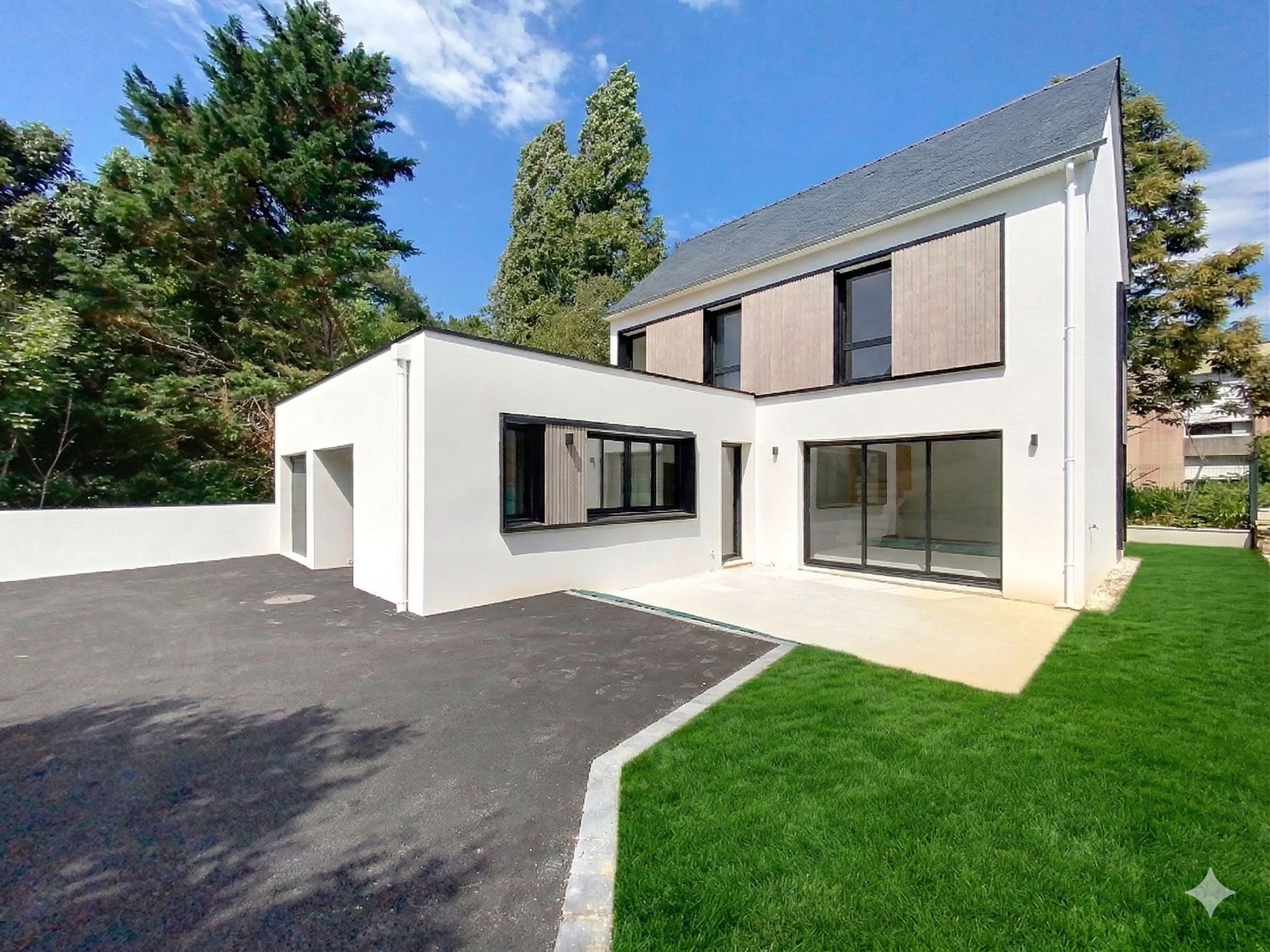 PLOEMEUR – A deux pas du bourg, nichée sur un terrain paysagé de 491 m², cette élégante maison contemporaine neuve de 132 m² séduit dès les premiers instants par son architecture épurée et ses volumes baignés de lumière. Exposée plein Sud-Ouest, elle incarne un art de vivre harmonieux entre confort moderne et prestations haut de gamme.