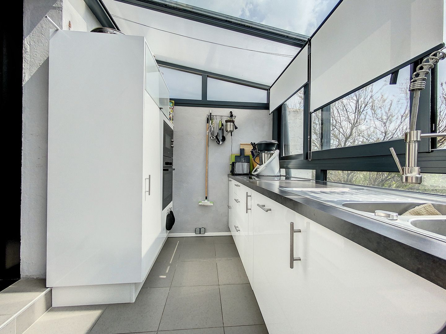 En rez-de-jardin, une buanderie, une pièce annexe donnant sur l’extérieur, une cave et un garage complètent cet ensemble fonctionnel.