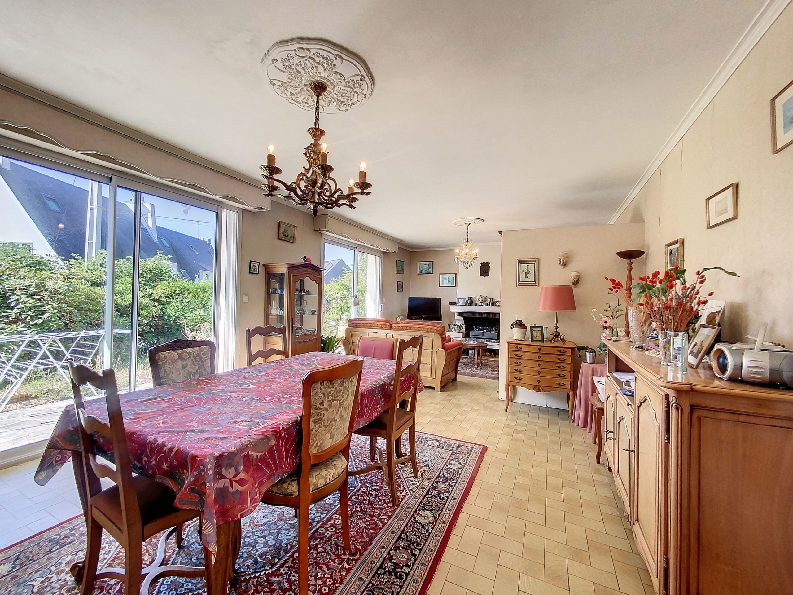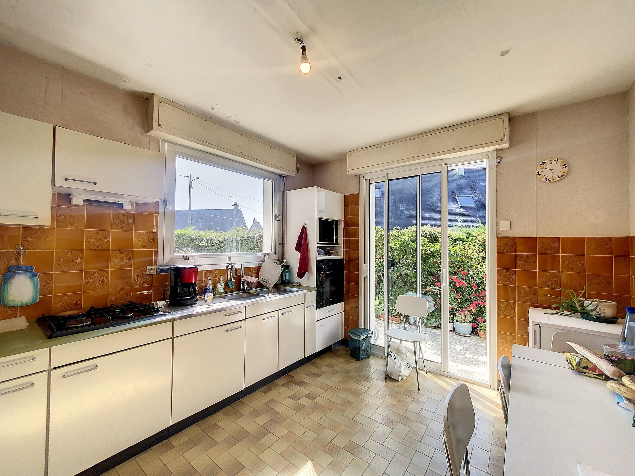 PLOEMEUR – A DEUX DE LA PLAGE DE PORT FONTAINE et des commerces, maison familiale bénéficiant d’une vie de plain-pied, avec au rez-de-chaussée un séjour avec possibilité d’ouverture sur la cuisine, grande chambre avec salle d’eau, buanderie et garage. A l’étage 4 chambres et salle d’eau. A découvrir rapidement.