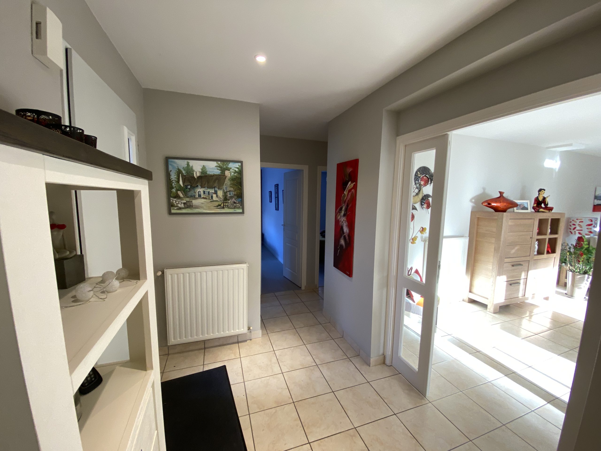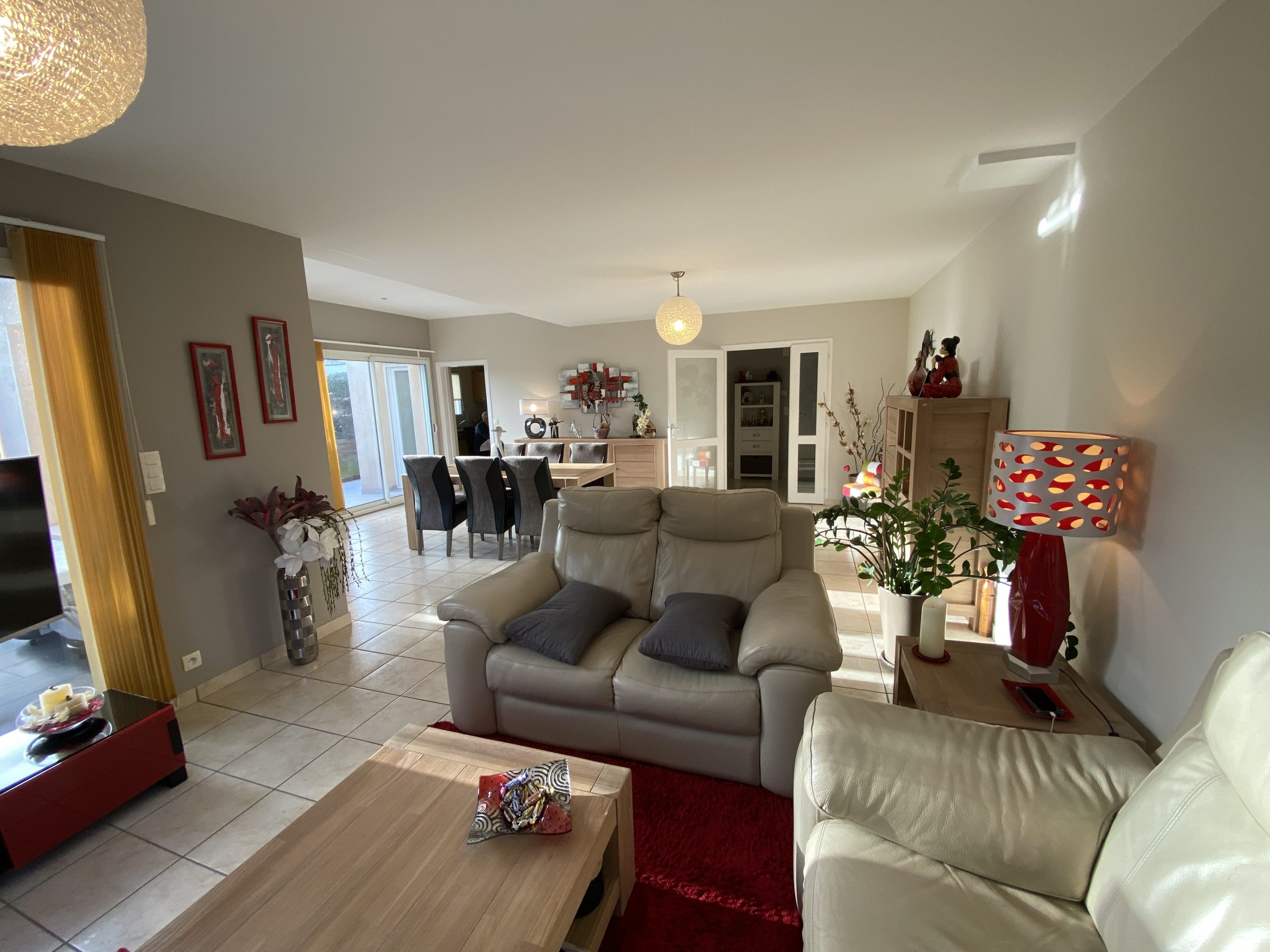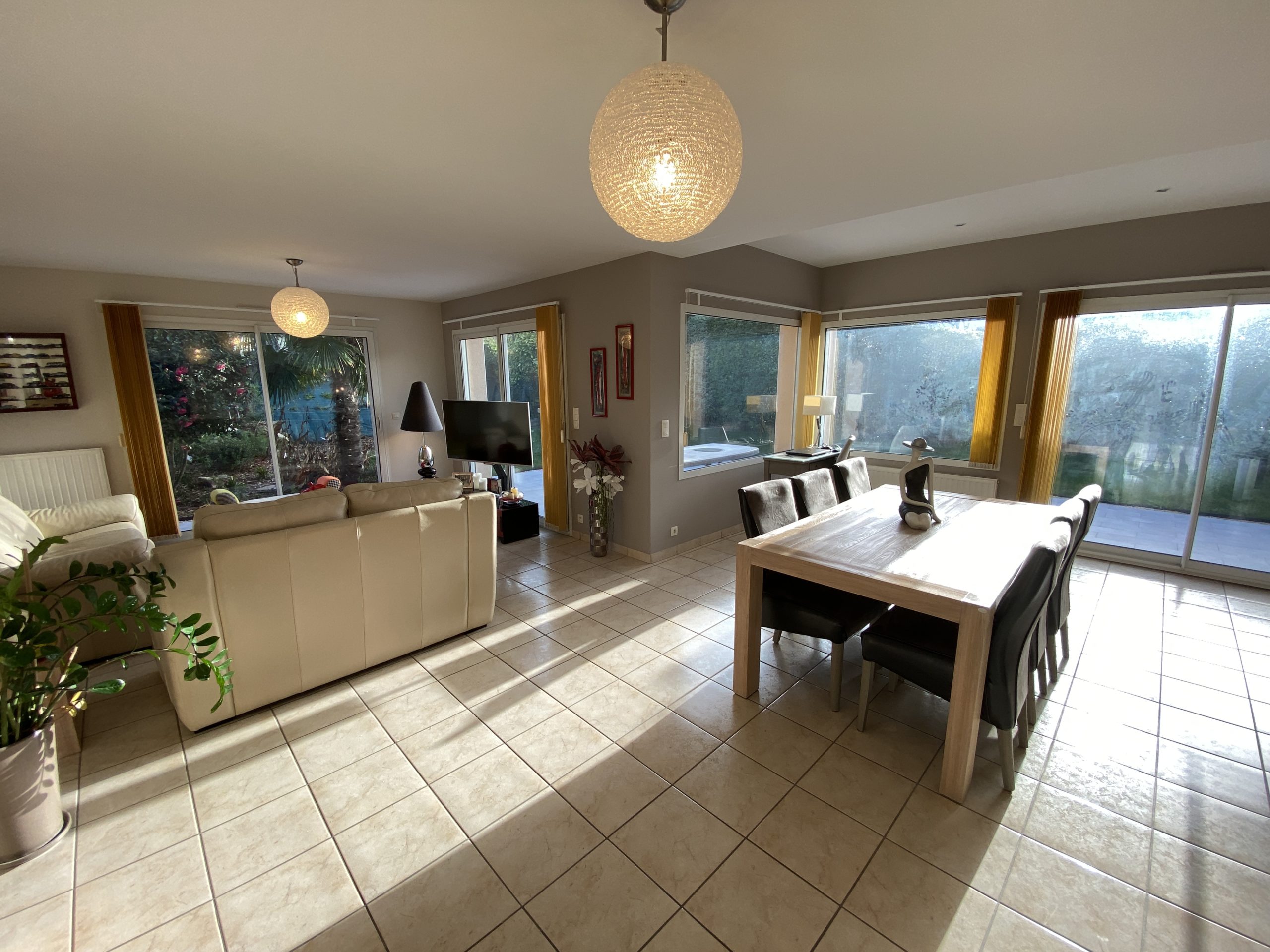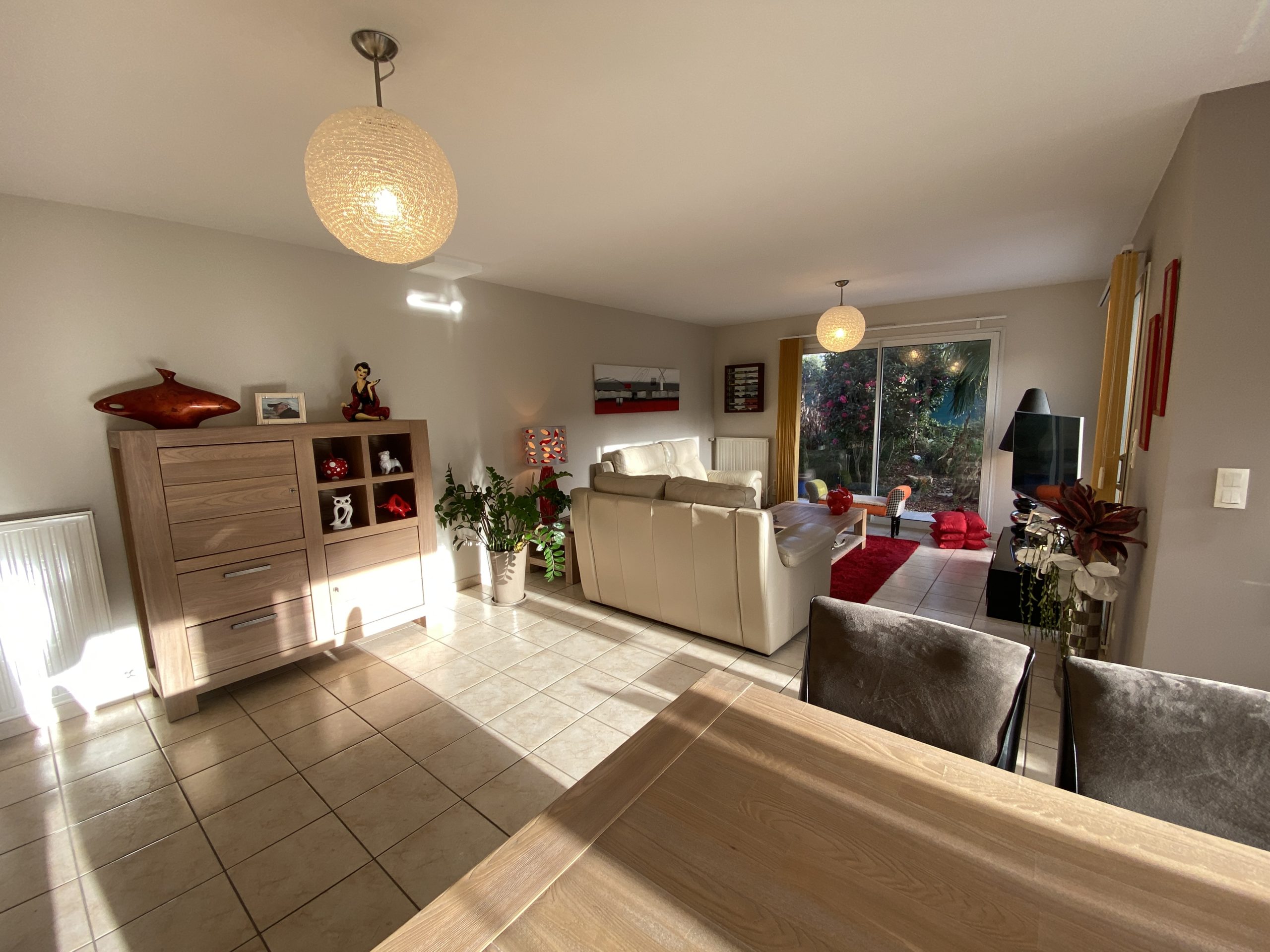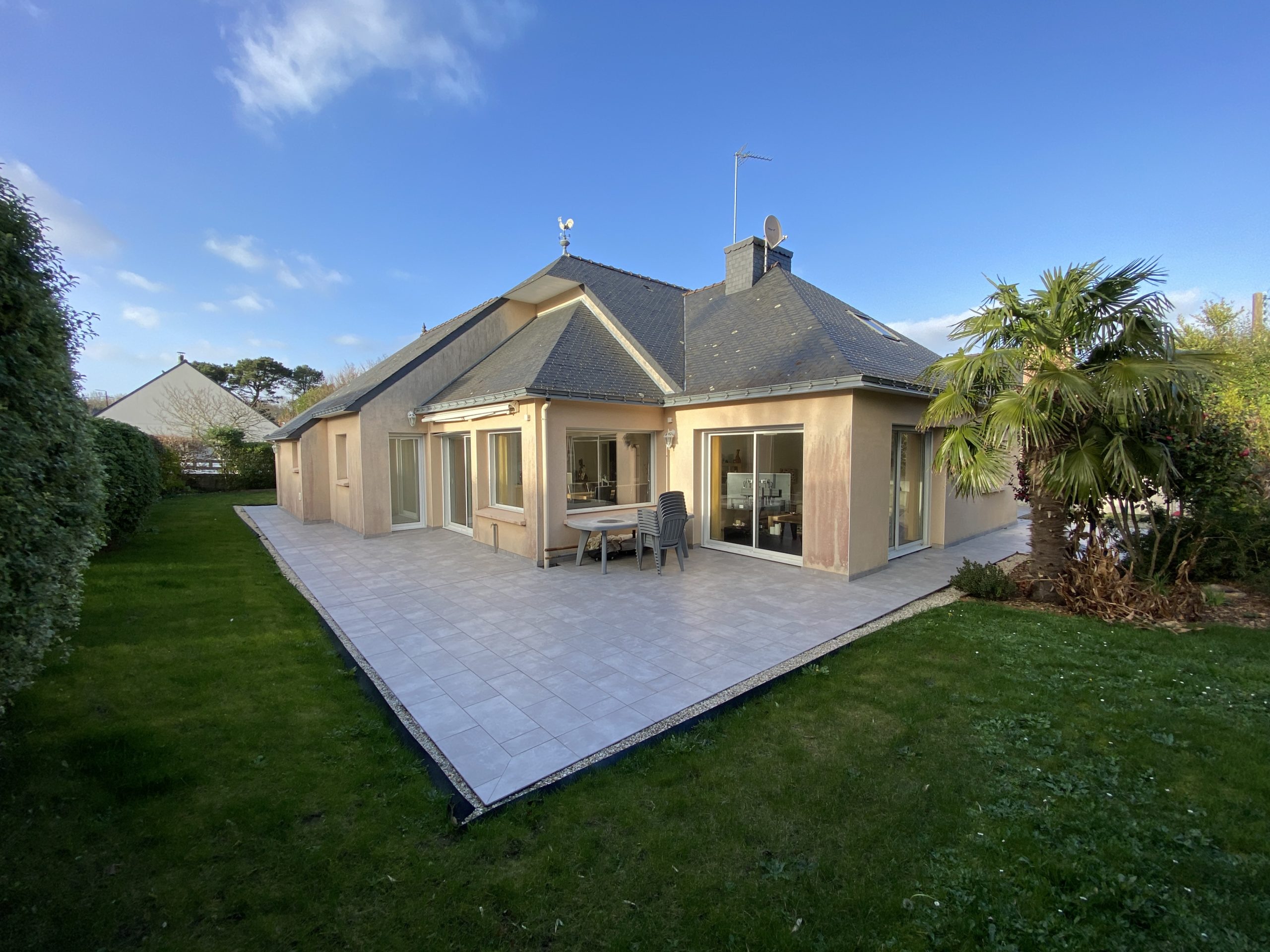PLOEMEUR – à découvrir très belle contemporaine avec une vie de plain pied comprenant entrée avec placard, salon séjour lumineux, cuisine équipée et aménagée, cellier, 3 chambres dont une avec salle d’eau, placards, salle d’eau, WC, garage, grenier, terrasse, jardin clos.