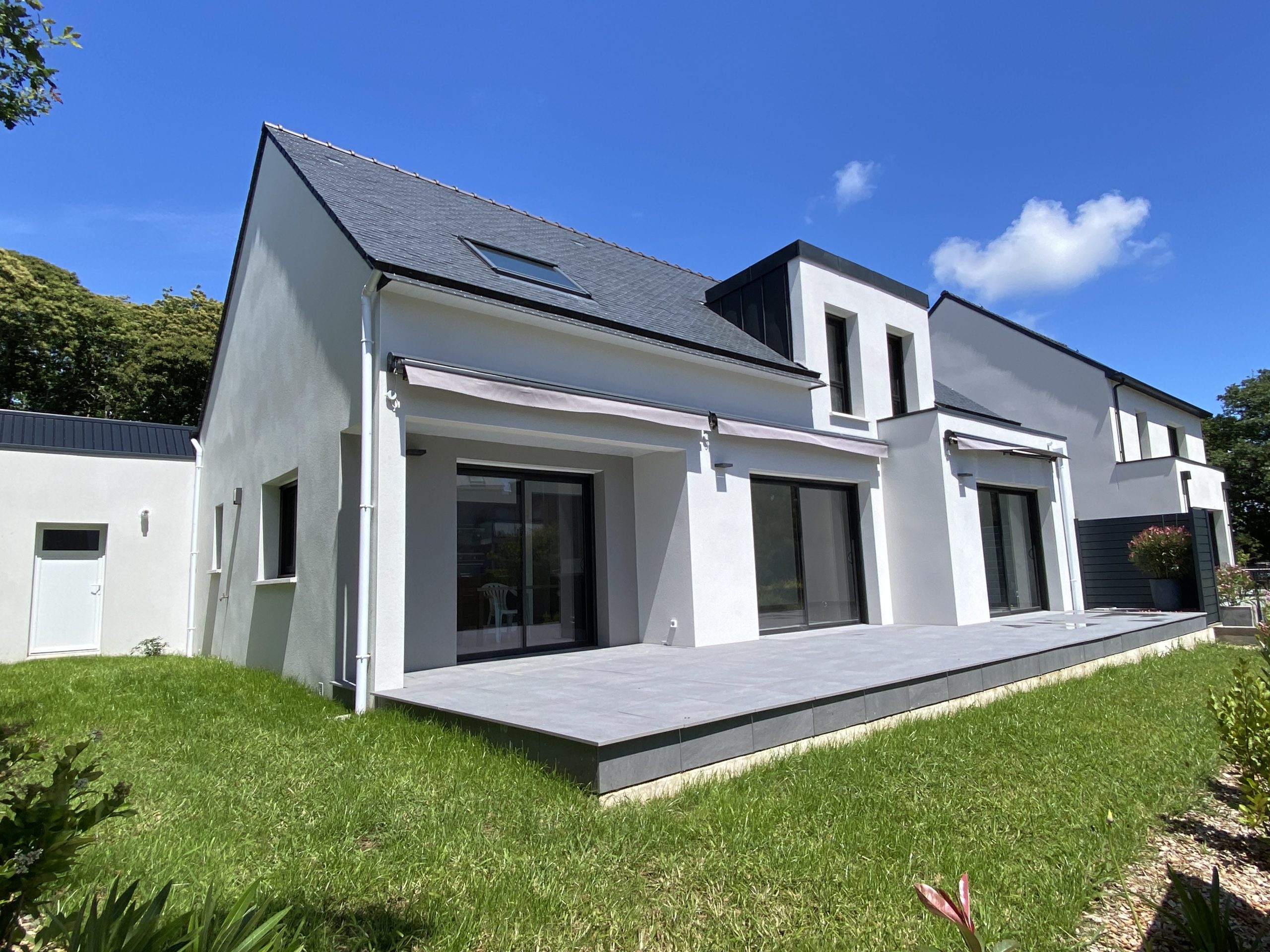 PLOEMEUR PROCHE DU CENTRE VILLE, dans un quartier recherché, maison NEUVE comprenant entrée, grand salon séjour avec cuisine équipée et aménagée, suite parentale, à l’étage mezzanine bureau, 3 chambres avec rangement, salle d’eau, buanderie, garage, grande terrasse, très belles prestations A VISITER RAPIDEMENT