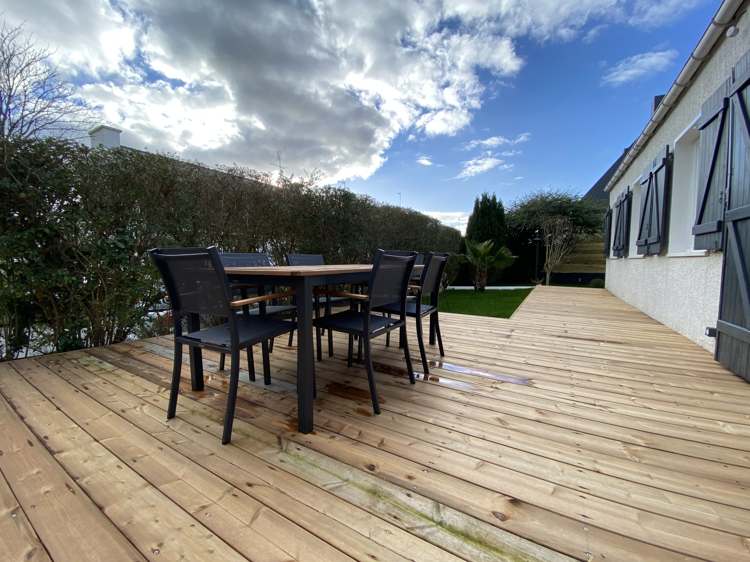 A deux pas du centre ville, une vie de plain pied pour cette maison entièrement rénovée, comprenant une grande pièce de vie d’une surface de 45 m2, avec cuisine équipée et aménagée, 3 chambres dont une avec dressing, salle d’eau, WC, garage avec grenier, jardin clos, terrasse…A VISITER !!