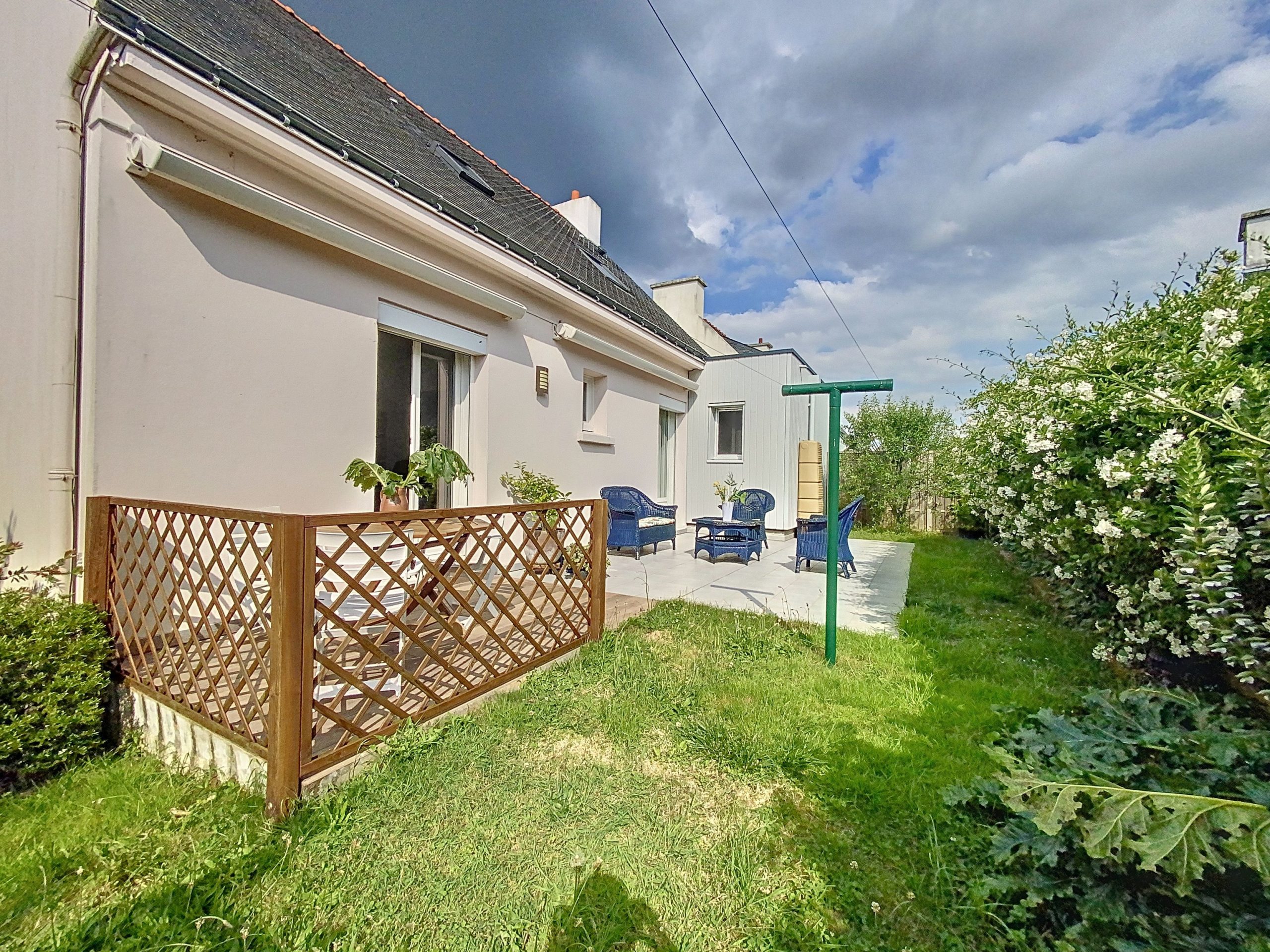 PLOEMEUR- En exclusivité sur un emplacement recherché, cette maison rénovée saura vous séduire par sa vie de plain pied. Elle dispose au rez-de-chaussée d’un espace séjour/ salon exposé sud donnant sur une terrasse et un jardin agréable sans vis à vis, une cuisine aménagée et équipée et une belle suite parentale avec une grande salle d’eau. A l’étage vous trouverez 3 chambres et une salle de bains. Un sous sol complet est un de ses gros points forts ainsi que son stationnement et son carport.
