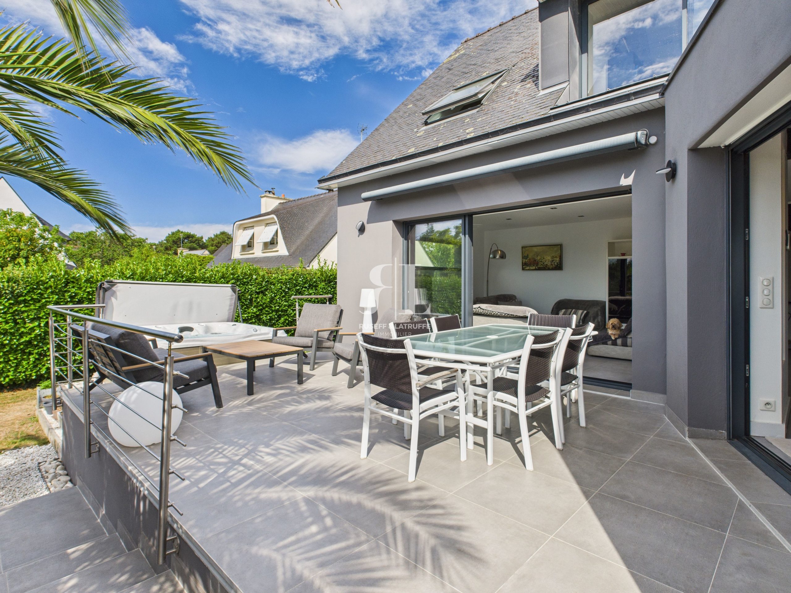 Découvrez en exclusivité cette magnifique maison à vendre à Ploemeur dans un hameau recherché, offrant 165 m² d’espace de vie en parfait état. Construite en 1974 entièrement rénovée en 2015, cette demeure comprend 4/5 chambres spacieuses, un salon accueillant avec une cuisine entièrement équipée, un bureau en mezzanine avec une vue magnifique sur l’île de Groix, un sous-sol avec salle de sport, buanderie, atelier, ainsi qu’un jardin, une terrasse et un jacuzzi pour profiter des journées ensoleillées. Bénéficiez de parkings intérieur et extérieurs . Proposée à 699 900 EUR, cette propriété est une opportunité à ne pas manquer. Contactez-nous pour une visite !
