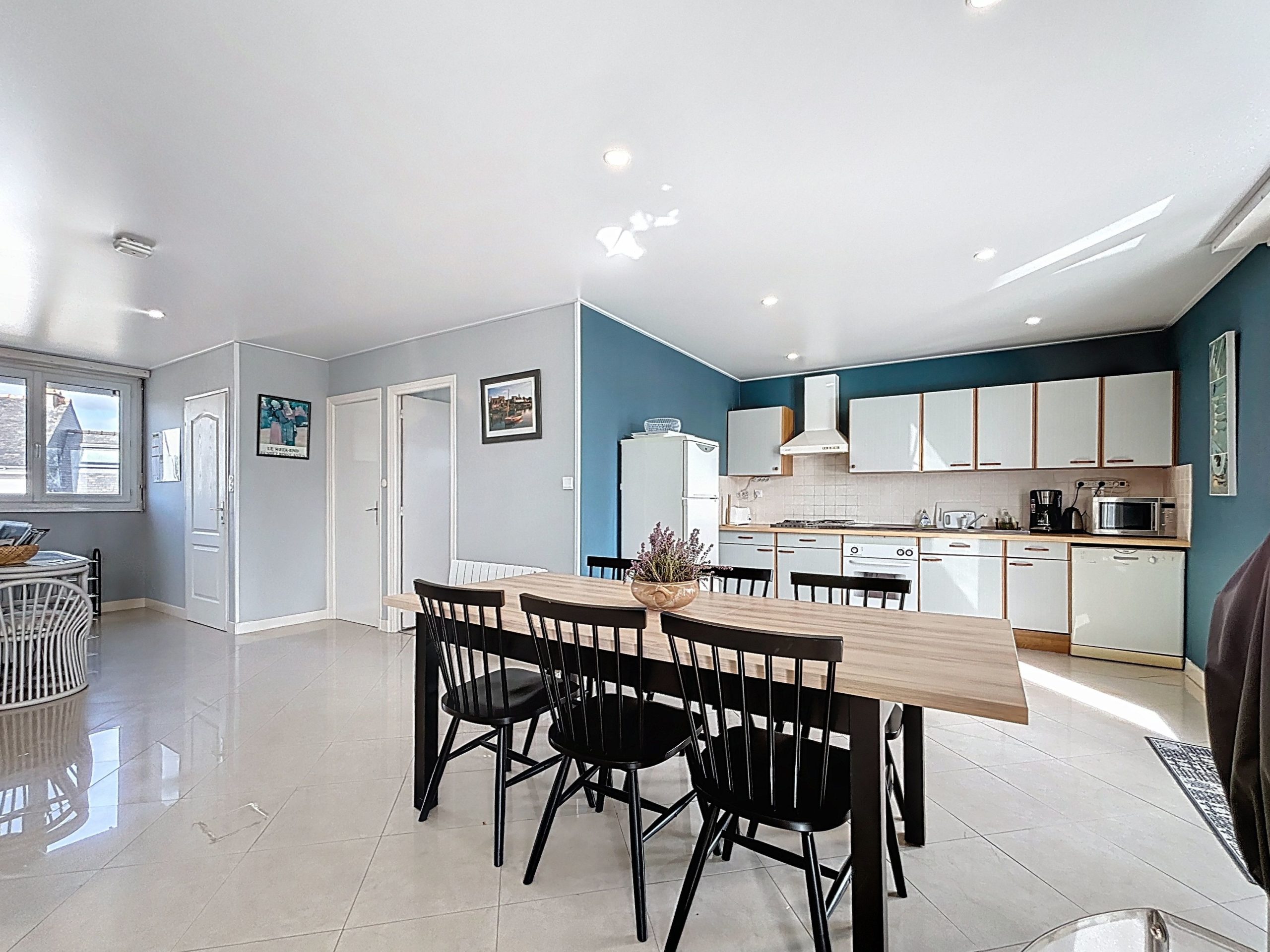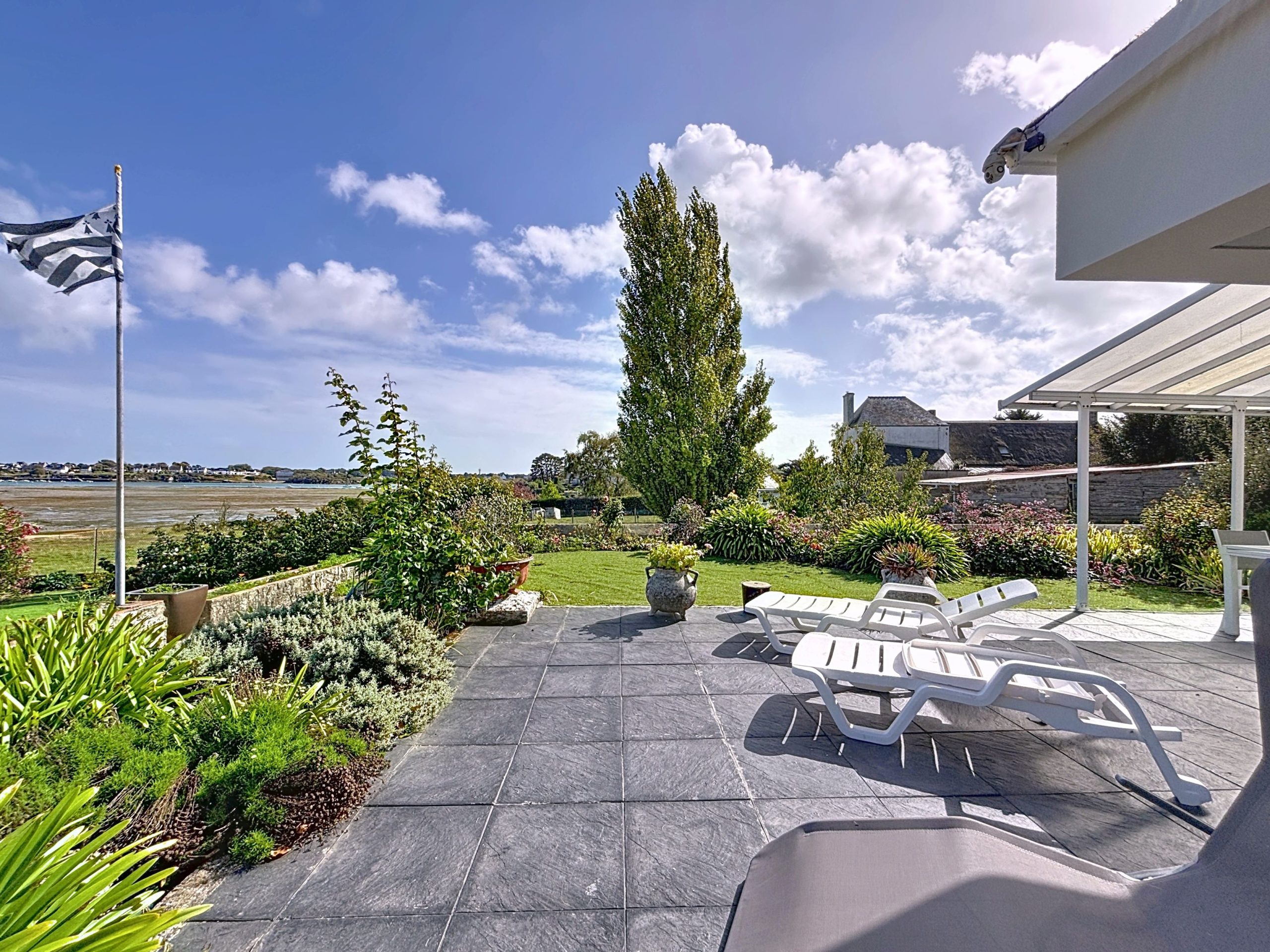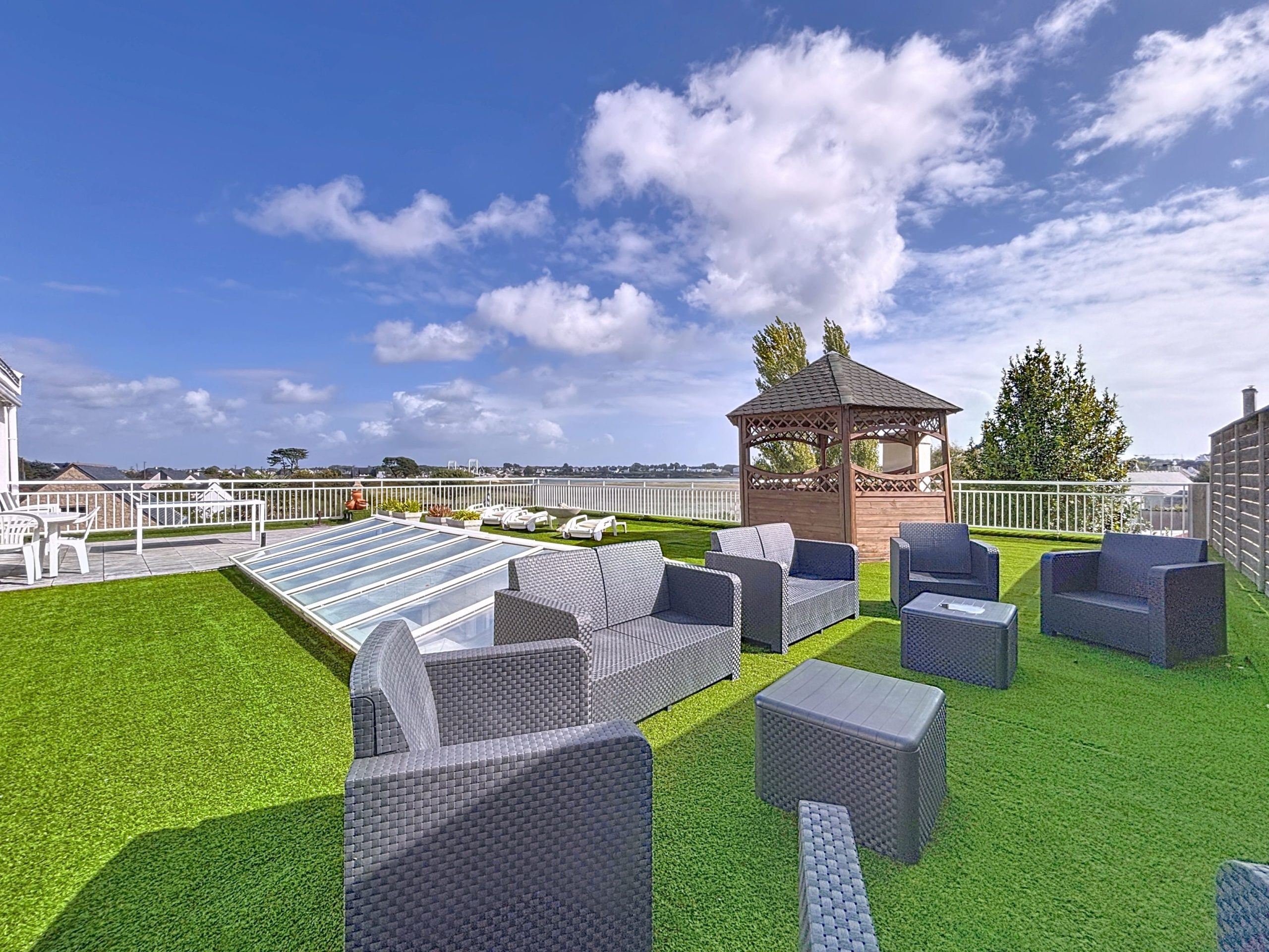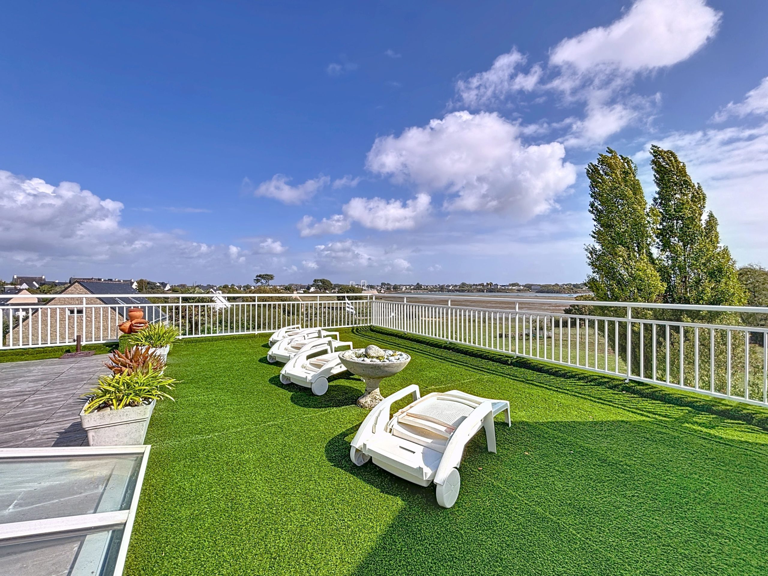 À l’étage, un appartement indépendant avec une grande terrasse de 150 m² domine la ria et offre une perspective à couper le souffle. Il peut être intégré à la maison principale ou conservé pour accueillir vos proches en toute intimité.