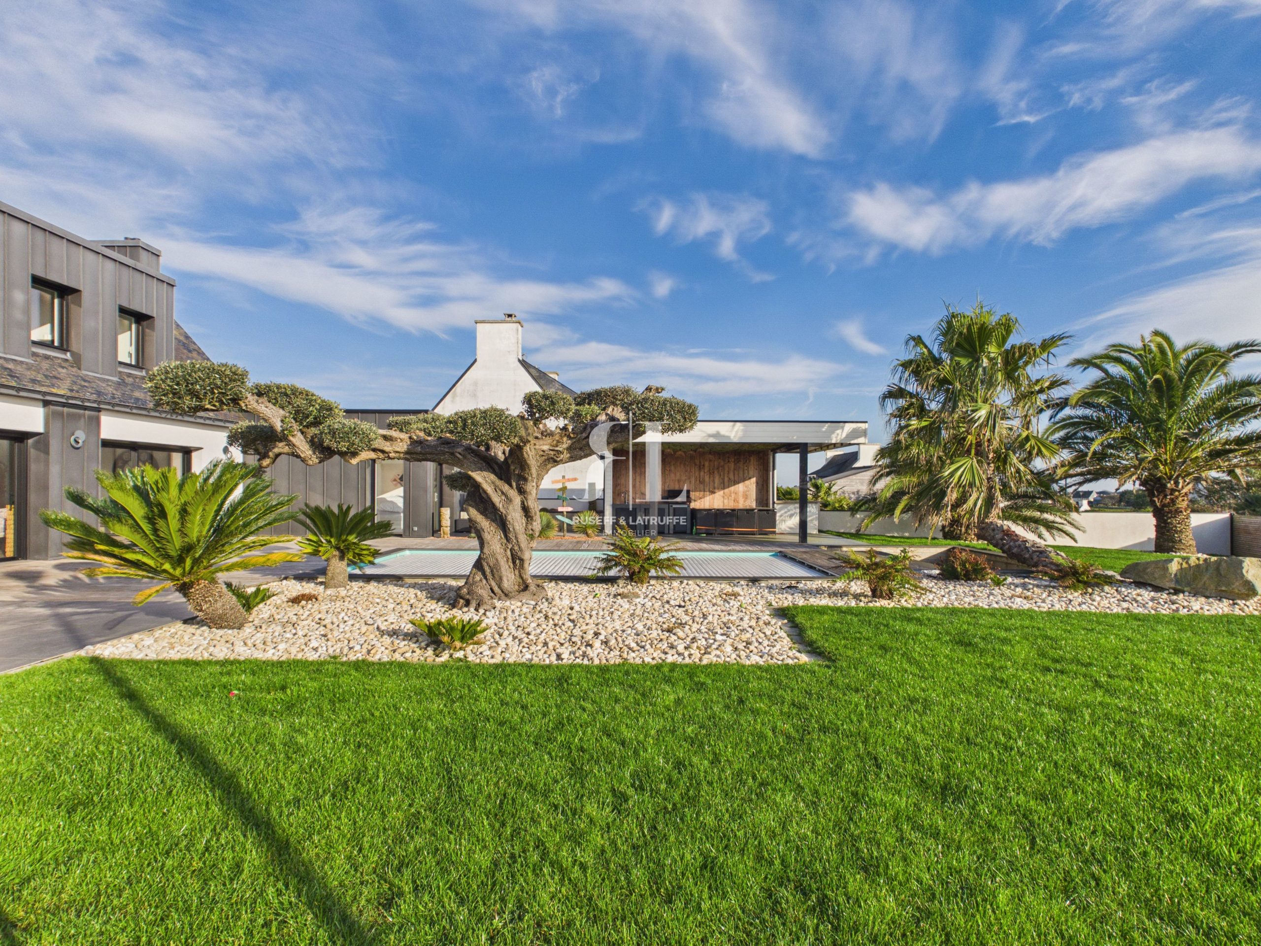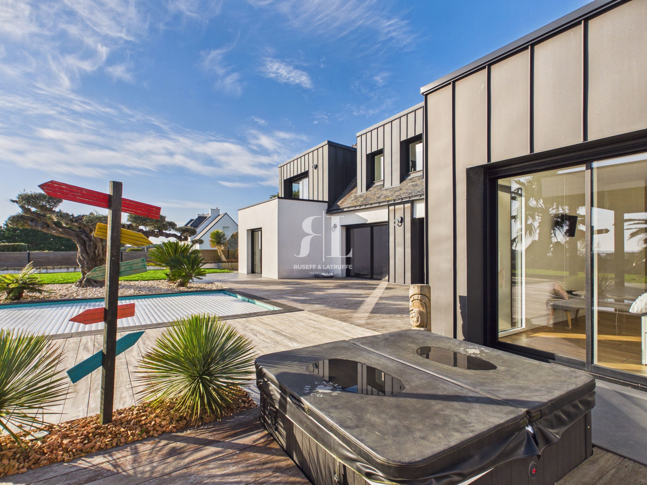 Édifiée sur une parcelle de 825 m², cette maison allie confort, volumes et prestations de qualité, dans un secteur prisé de Plouhinec, à proximité du littoral.