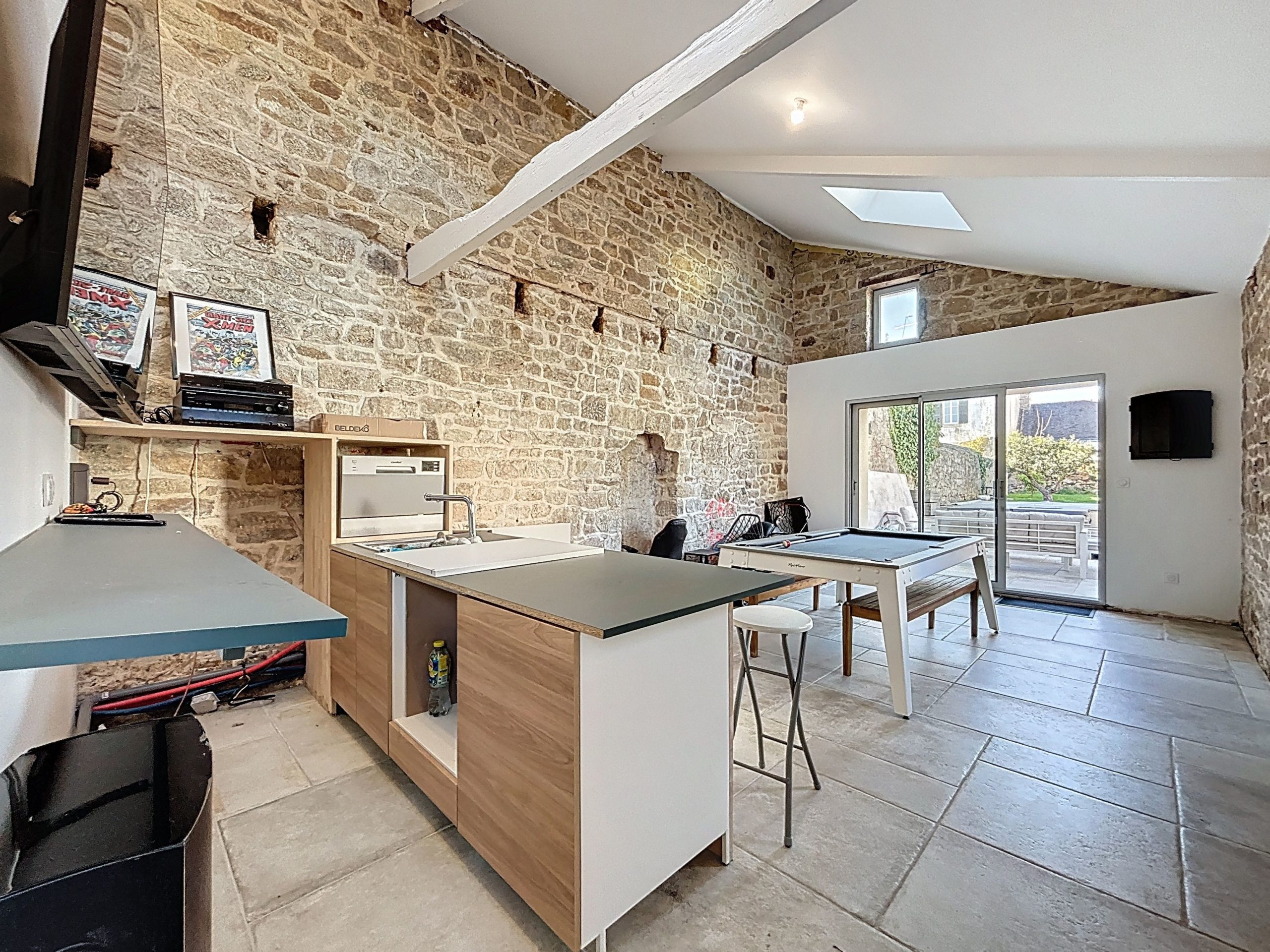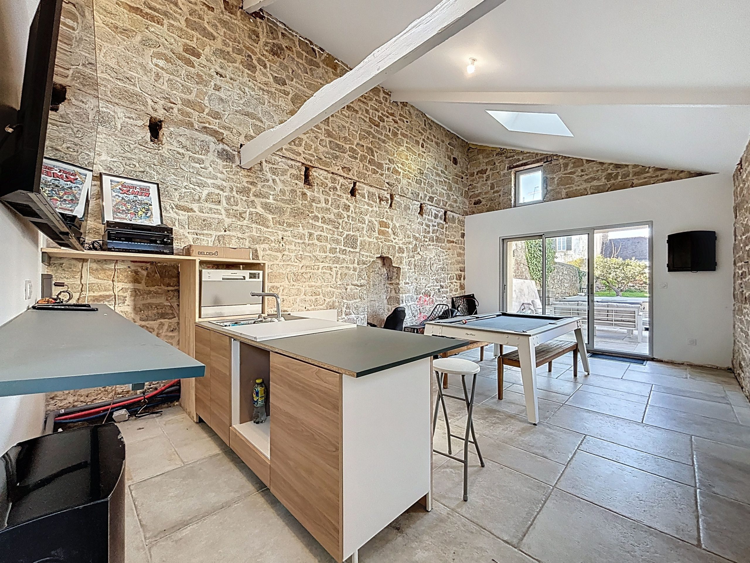 Attenante, la longère entièrement rénovée séduit par ses volumes généreux et son atmosphère unique, avec près de 4,50 m de hauteur sous plafond. On y trouve deux chambres avec mezzanine et une salle d’eau moderne. Une cuisine ouverte sur un séjour lumineux, donnant sur une seconde terrasse et un jardin intimiste agrémenté d’une piscine et d’un jacuzzi complètent cet espace.