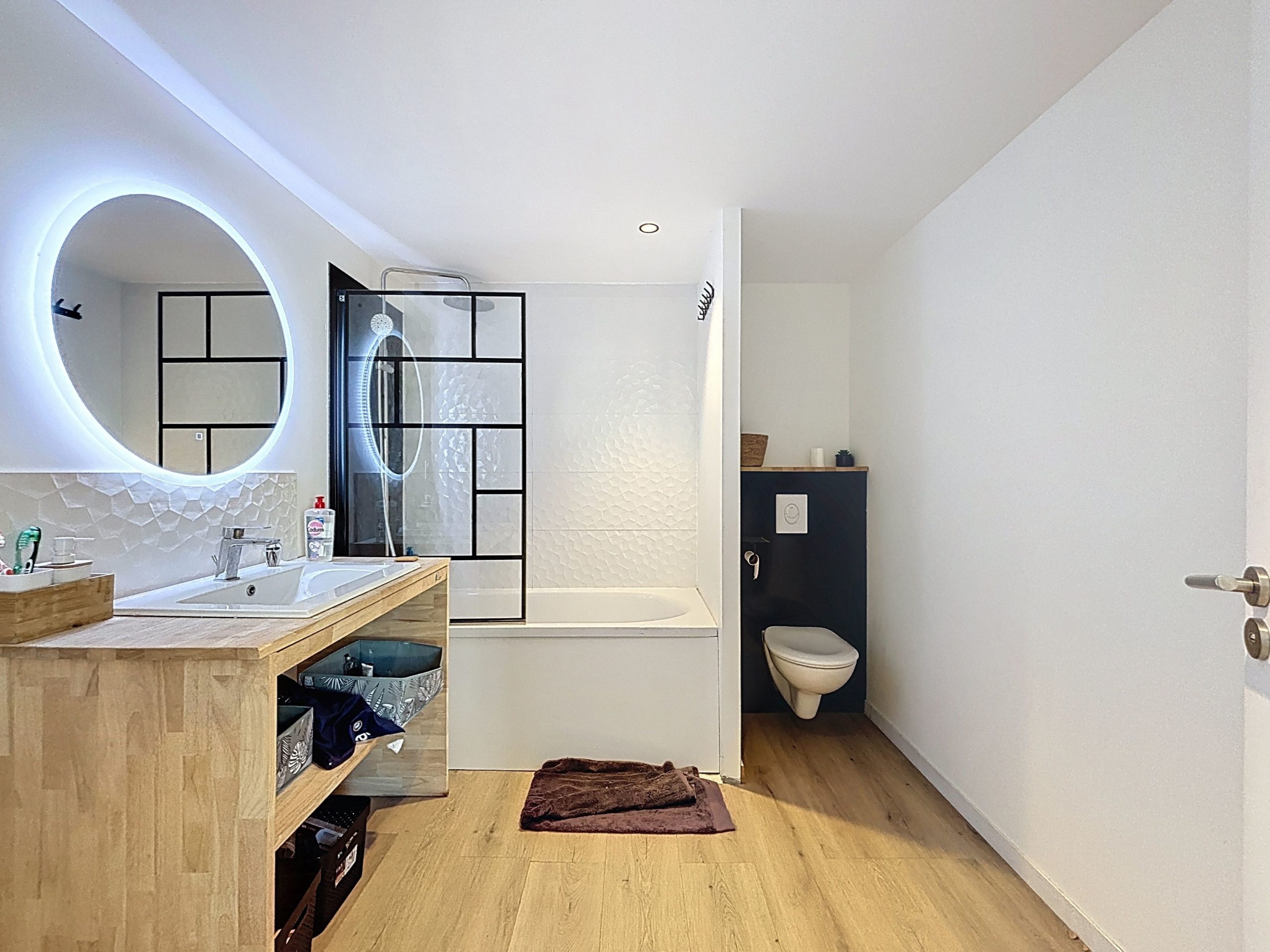 Entièrement rénovée en 2023 avec des matériaux de qualité, cette propriété de 182 m² habitables conjugue confort moderne, charme et emplacement privilégié. Elle se compose de deux espaces de vie pouvant communiquer ou être indépendants, offrant une grande flexibilité d’usage.
