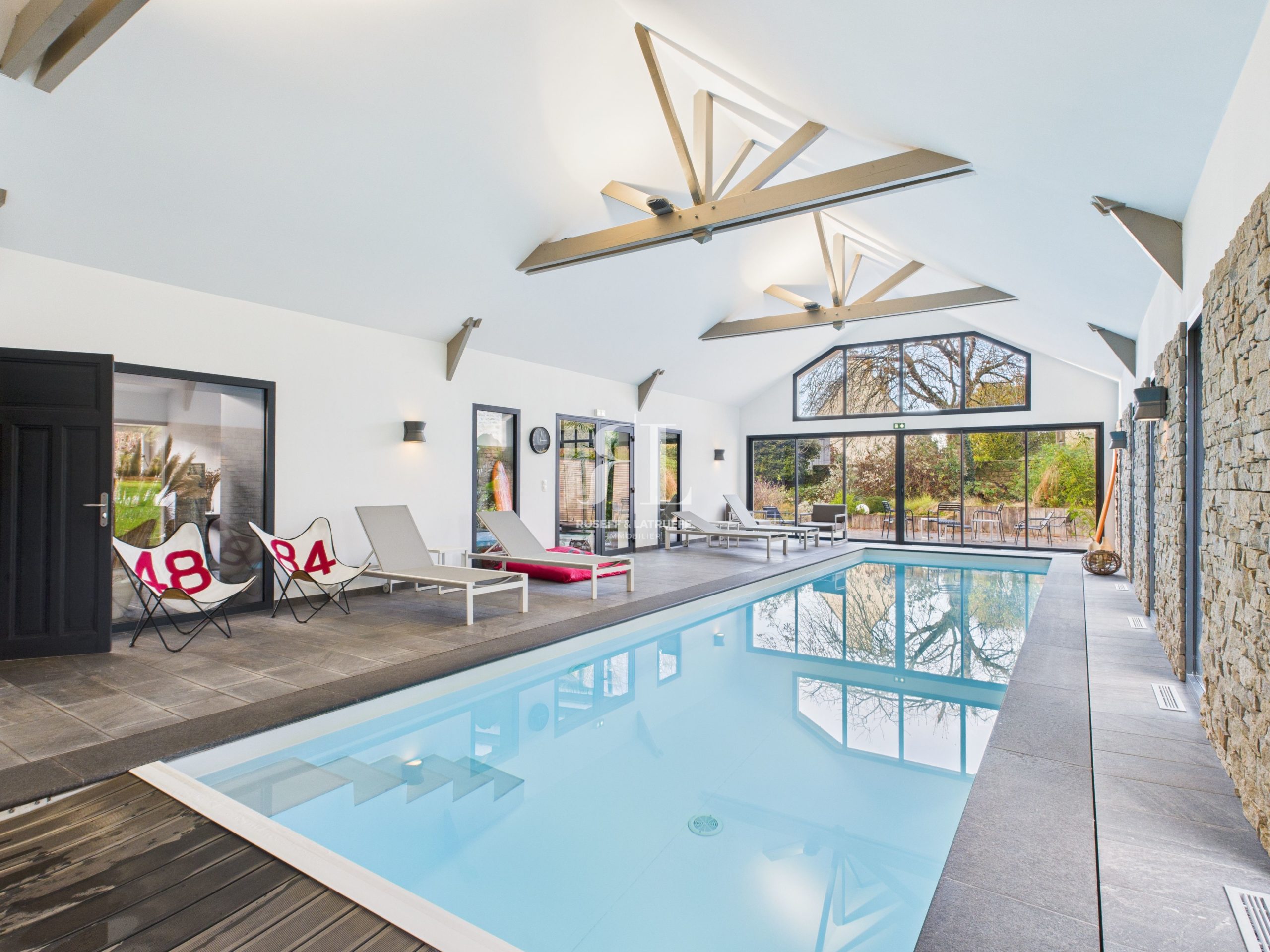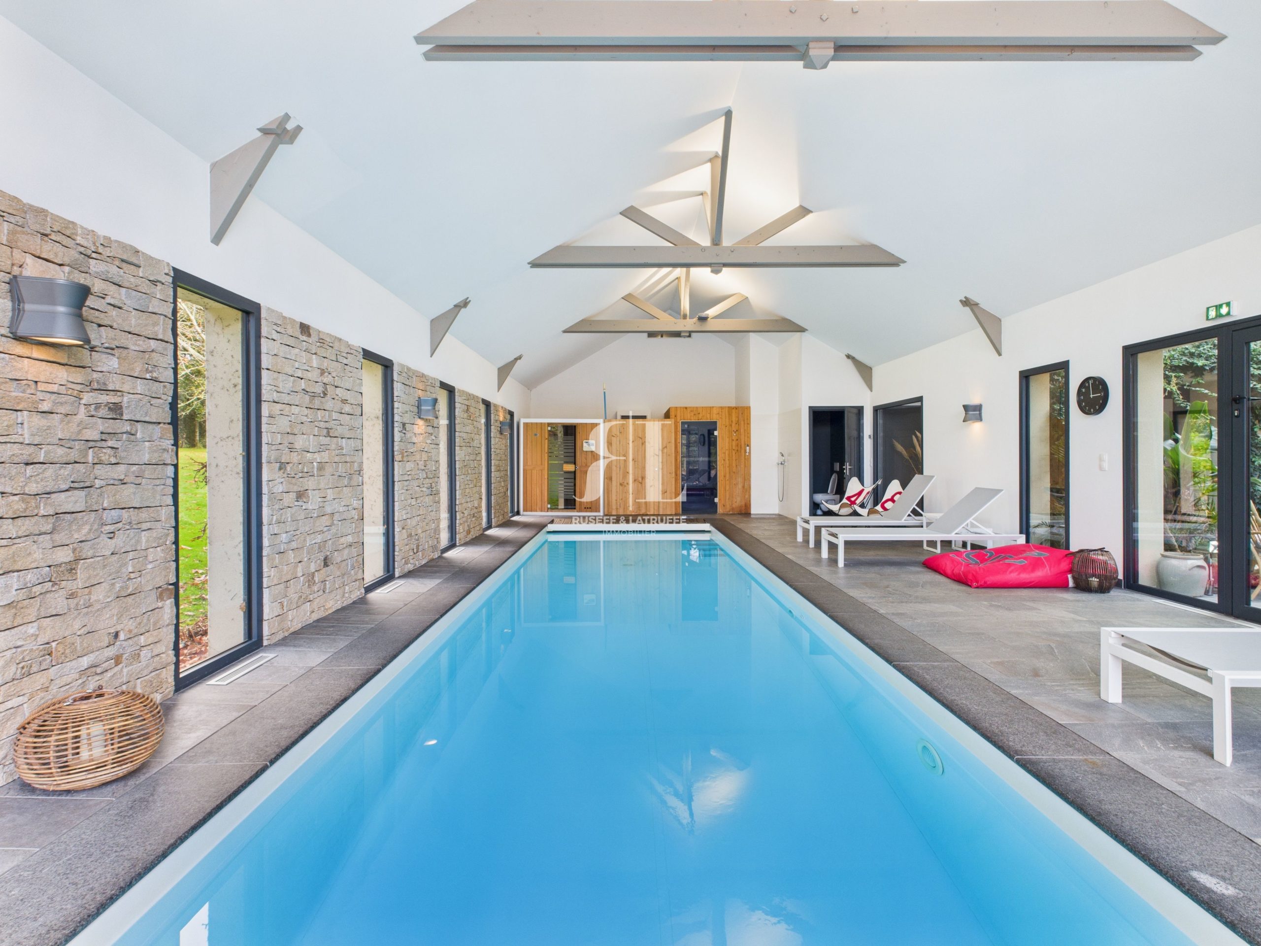 La maison d’hôtes, pensée pour recevoir dans un cadre confortable et convivial, dispose au rez-de-chaussée d’un vaste hall, d’une salle à manger, d’une cuisine et de trois chambres avec salles d’eau et WC privatifs. Un espace bien-être vient sublimer ce niveau avec une piscine couverte, un spa, un sauna et un hammam.